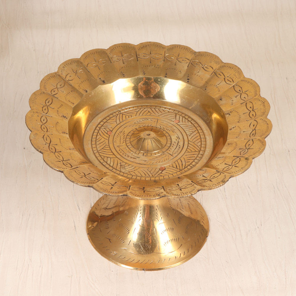 Bring the captivating essence of South Indian artistry into your home with our exquisite Vintage Brass Fruit Bowl. Meticulously crafted from solid brass and adorned with intricate engravings, this striking centerpiece is destined to be the crown jewel of your kitchen. More than just a functional fruit bowl, this piece is a true work of art that will elevate your everyday décor. Imagine the warm glow of the brass finish complementing your kitchen's aesthetic, while the captivating motifs draw the eye and spark conversation. Whether you're hosting a dinner party or simply seeking to infuse your space with a touch of timeless elegance, this bowl is sure to impress. Investing in this heirloom-quality fruit bowl is a celebration of rich cultural heritage and a commitment to timeless design. Elevate your kitchen, delight your guests, and treat yourself to a truly unique piece that will be cherished for years to come.