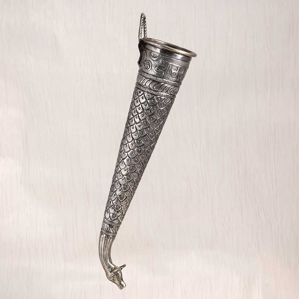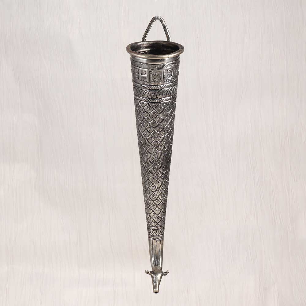 Experience the divine in your home puja with the antique Brass Nandi Head Pipe. This special vintage brass pipe is shaped as Nandi, Lord Shiva's loyal bull vehicle and disciple. Connect deeply with the worship of Shiva through this meaningful Nandi Head Pipe. Expertly designed with fine vintage brasswork, the Nandi shape represents strength, dedication, and divine blessing. Use this pipe to perform special abhishekam rituals, pouring milk or water over the Shivling in veneration of Lord Shiva. The gorgeous craftsmanship and sacred symbolism make your puja rituals even more spiritually fulfilling. An ideal gift for Shiva devotees, this special Nandi pipe brings antique elegance and symbolic significance to home shrines. Its timeless brass artwork and sacred Nandi shape create a powerful tool for infusing your worship space with divine connection. Make your next puja, holiday, housewarming, or birthday memorable with this unique pipe.