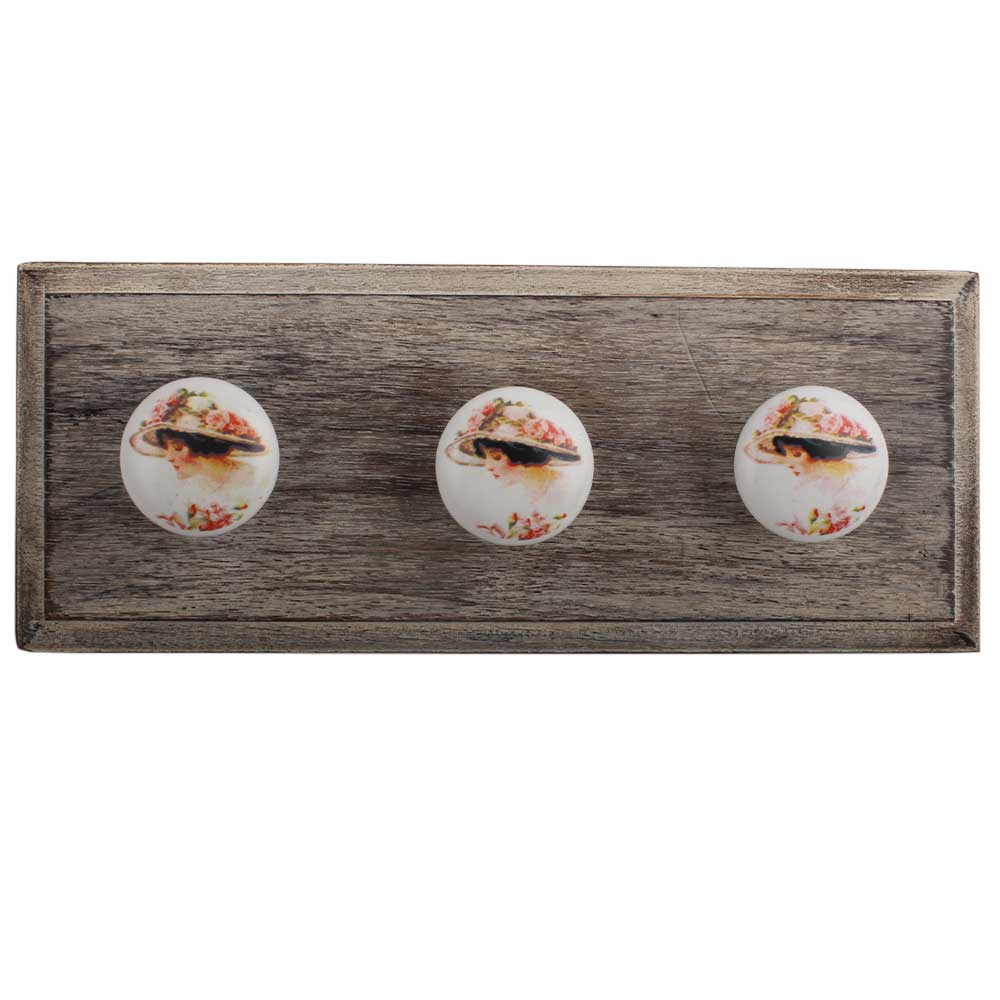 Beautiful Lady Ceramic Wooden Hook. A Perfect Complement to the Soft Tone of the Wood are these White Traditional Hat & Coat Hook Made of Genuine Porcelain and Brass. It can be use to Hang Jewellery, Leashes, Towels, Scarves, Light Weight Sweaters, Caps Etc.