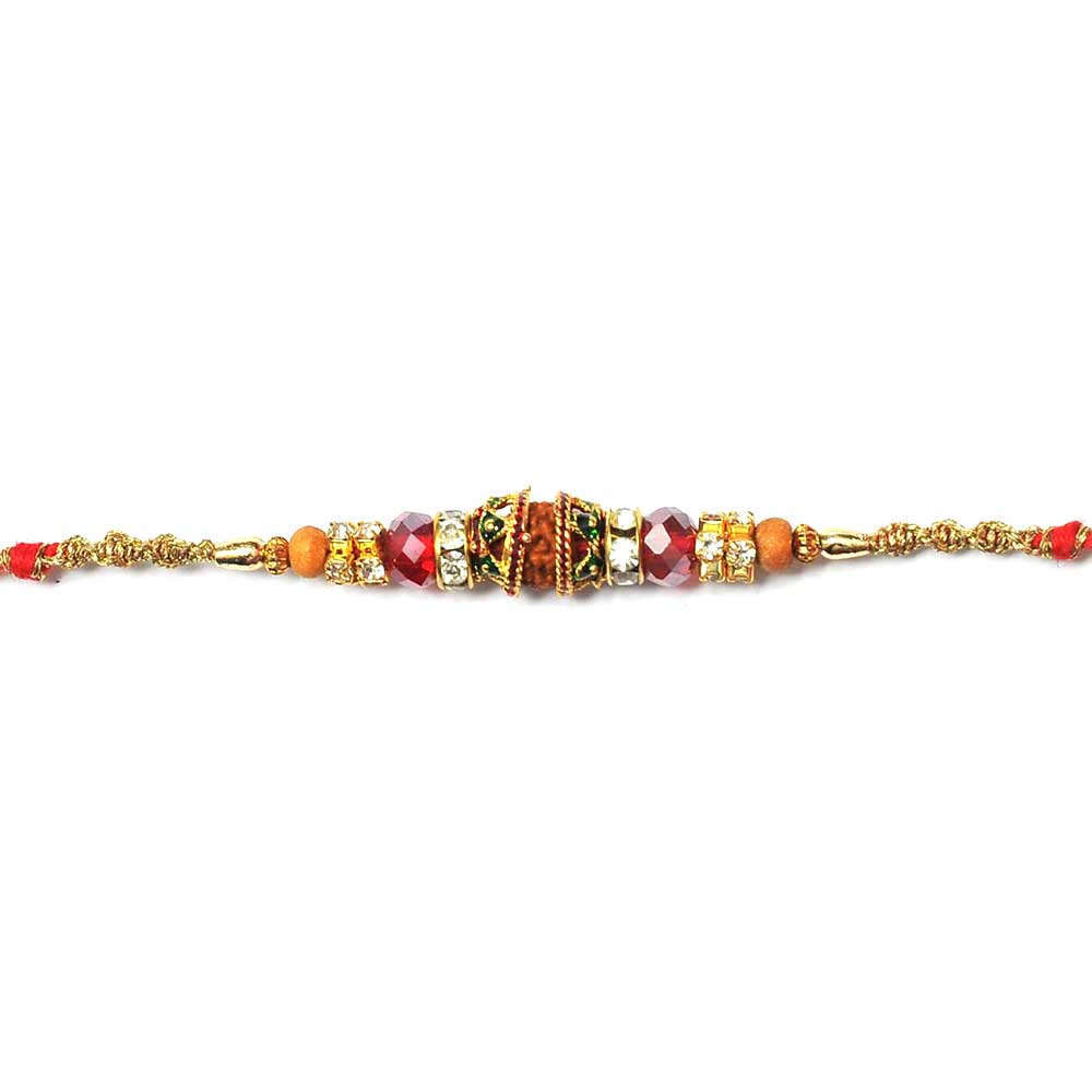 Beautiful Meenakari Beads Rakhi with Rudraksha and Red Crystal