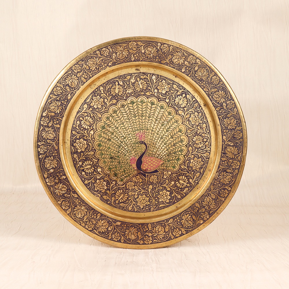 Prepare to be mesmerized by the captivating beauty of our Vintage Brass Hanging Plate. Adorned with a stunning peacock engraving and enchanting enamel work in warm brown and vibrant red hues, this exquisite piece is a true testament to the art of timeless craftsmanship. Imagine this Vintage Brass Hanging Plate gracing the walls of your home, its warm metallic glow casting a soft, inviting ambiance that captivates the senses. Whether displayed in your living room, hallway, or bedroom, this plate will infuse your space with a timeless elegance that transcends trends. This exquisite piece is perfect for the discerning homeowner who seeks to elevate their living space with a touch of vintage-inspired charm. Blend the allure of the past with the sophistication of the present, creating a harmonious and visually stunning environment that reflects your refined taste. Elevate your home with the irresistible beauty of this Vintage Brass Hanging Plate.