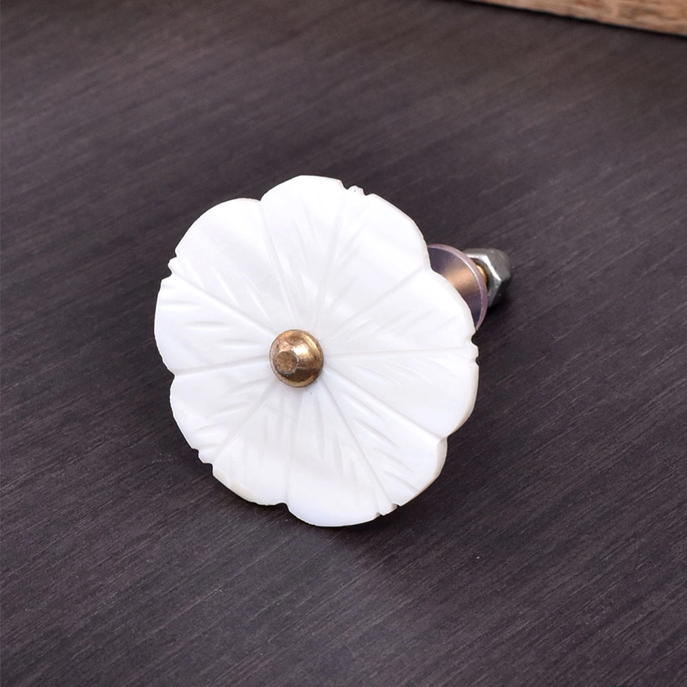 Buy a Flower-shaped Mother of Pearl Knob online that is a true masterpiece crafted by skilled Indian artisans. This elegant knob is not just a functional accessory but also a work of art that adds a touch of timeless beauty to your home decor. Each knob is painstakingly handmade with precision and care, ensuring every detail of the delicate flower design is brought to life. The shimmering white mother of pearl material lends a luxurious and ethereal quality to your furniture, making it an ideal choice for any Drawer, Dresser, Cabinet, Wardrobe, Cupboard, or almirah. The timeless elegance of this knob knows no bounds, making it a perfect gift for your loved ones on special or festive occasions. Whether it's a housewarming, anniversary, or simply a thoughtful gesture, this exquisite knob is a symbol of craftsmanship and refinement that will be cherished for years to come.