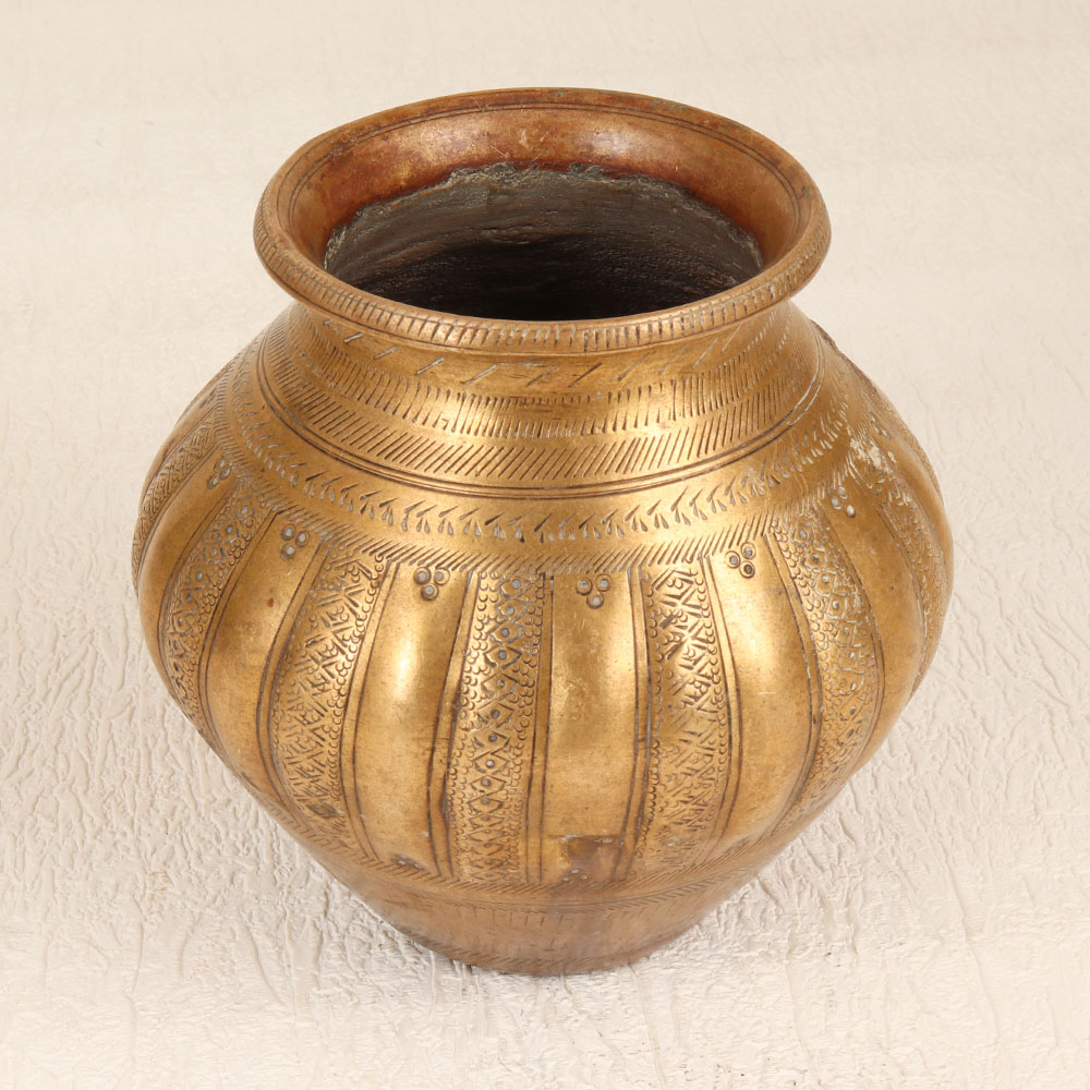Decorate your living room with our exquisite Vintage Brass Holy Water Pot. Crafted with precision by highly skilled and experienced Indian artisans in the timeless South Indian Art tradition, this pot seamlessly blends spirituality with artistry. The pot is made from high-quality brass which showcases intricate engravings that tell stories of ancient rituals and divine significance. The antique brown finish adds a touch of nostalgia, giving the pot a vintage allure that resonates with history. Perfect for prayers, rituals, and havans, this holy water pot is a versatile addition to your sacred space. Its elegance knows no bounds, making it suitable for homes, offices, restaurants, hotels, or cafes, enhancing the ambiance of any prayer room. Beyond its spiritual utility, this pot transforms into a charming indoor flower pot, further contributing to the aesthetic appeal of your space. Embrace the charm of yesteryears by adding this masterpiece to your vintage collection, or present it as a thoughtful gift to your family, friends or relatives on special, festive, or auspicious occasions. Imbued with craftsmanship and cultural significance, this Vintage Brass Holy Water Pot is a timeless treasure that transcends generations.