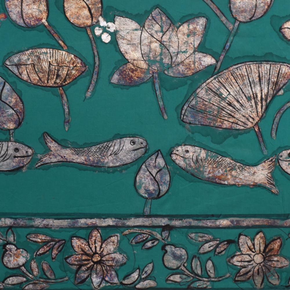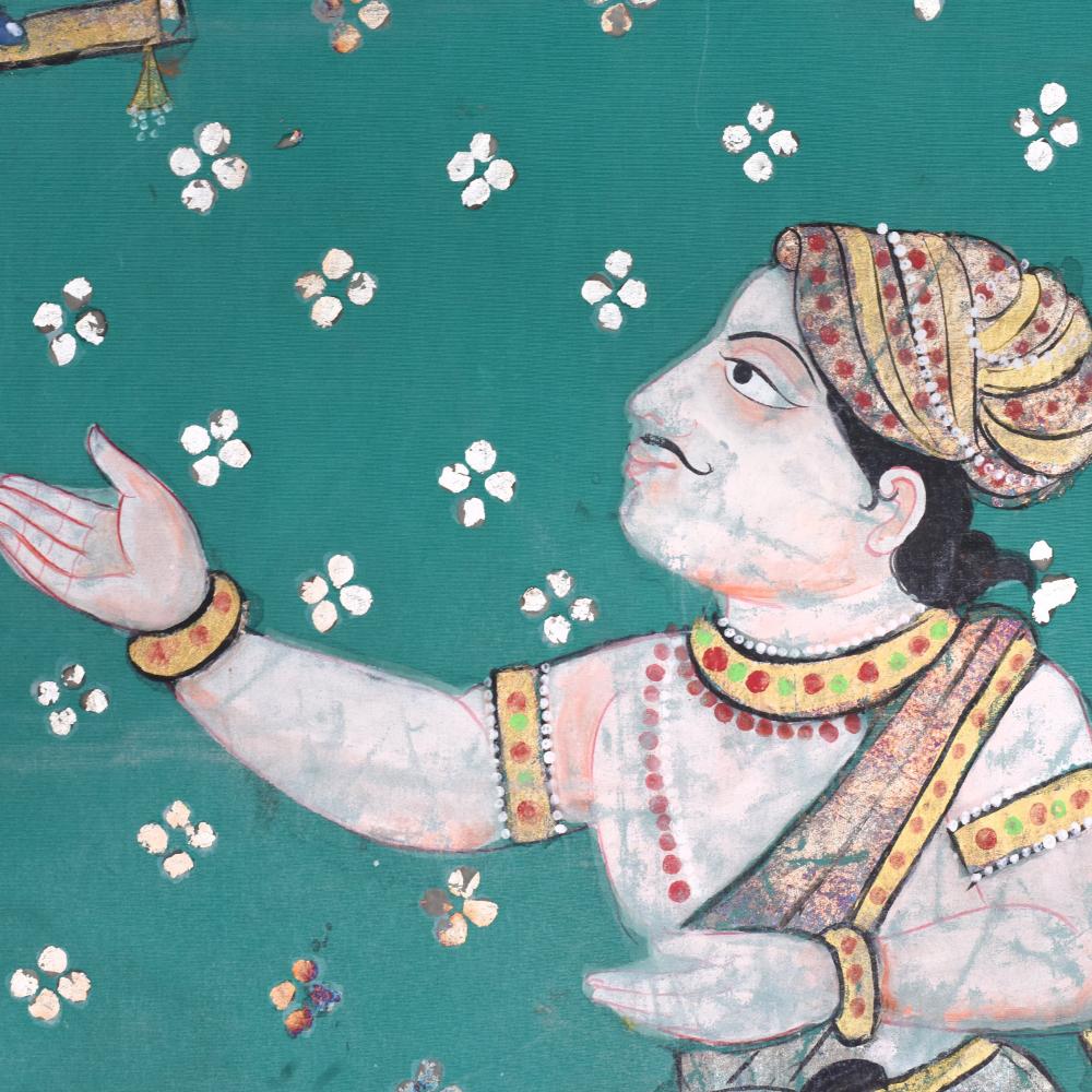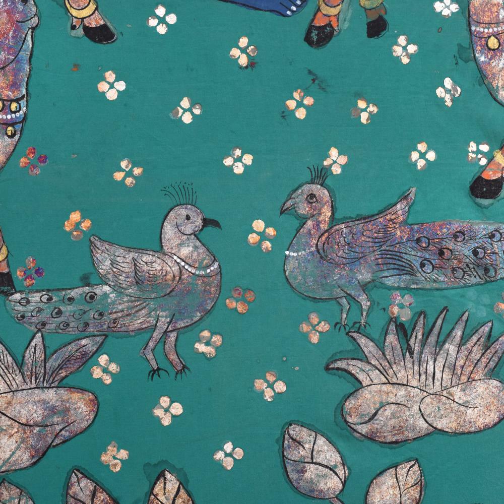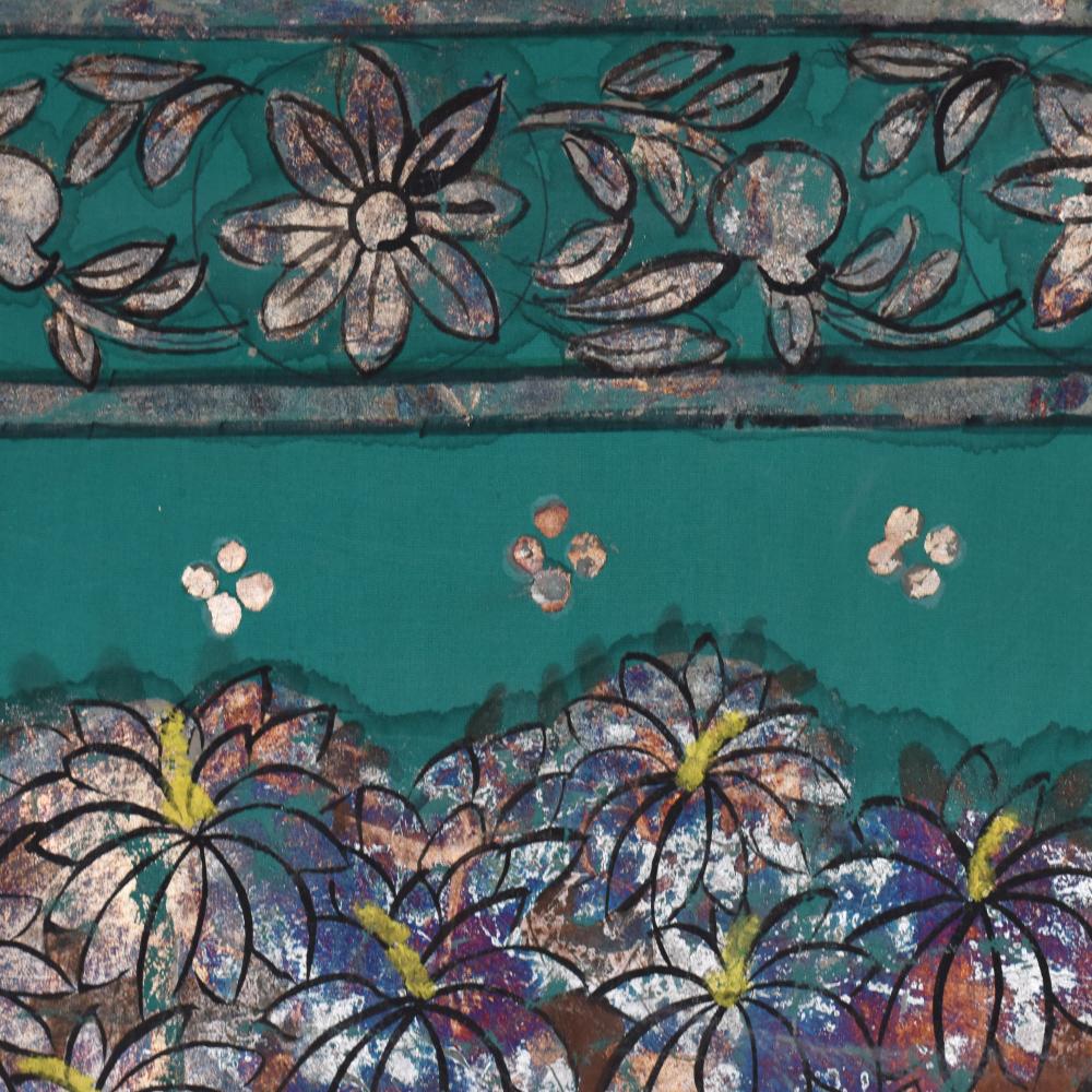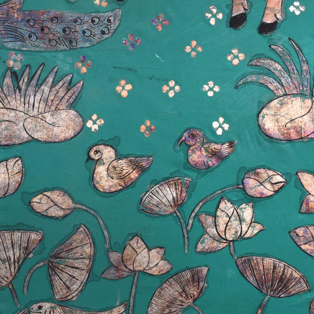 Elevate your space with the captivating beauty of this cloth pichwai painting without frame, featuring the beloved Lord Krishna in all his glory. Immerse yourself in the serene splendor of this meticulously crafted work of art, where the divine deity plays his enchanting flute amidst a herd of cows, framed by a lush, floral border. This pichwai painting is a true masterpiece, showcasing the exceptional skill and artistry of its creators. The level of craftsmanship is simply breathtaking, with each element of the design executed with the utmost care and precision. The vivid hues and mesmerizing details will transport you to the serene landscapes of Krishna's divine realm, inviting you to bask in the tranquility and inspiration of this sacred imagery. Whether you are a devotee of Lord Krishna or simply appreciate the beauty of Indian art, this pichwai painting is a must-have addition to your home. Display it as a stunning centerpiece, or use it to create a calming, meditative space. Either way, this exquisite work of art will elevate your surroundings and fill your heart with the timeless wonder of Krishna's eternal presence.