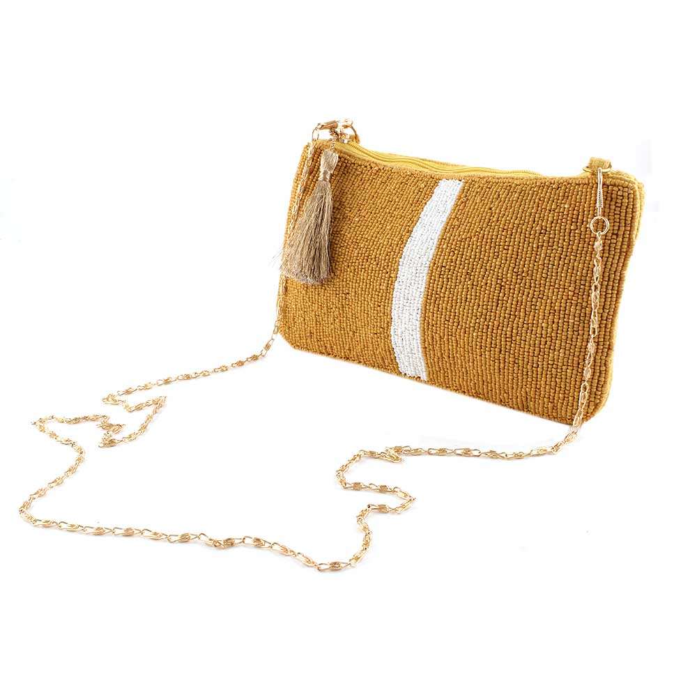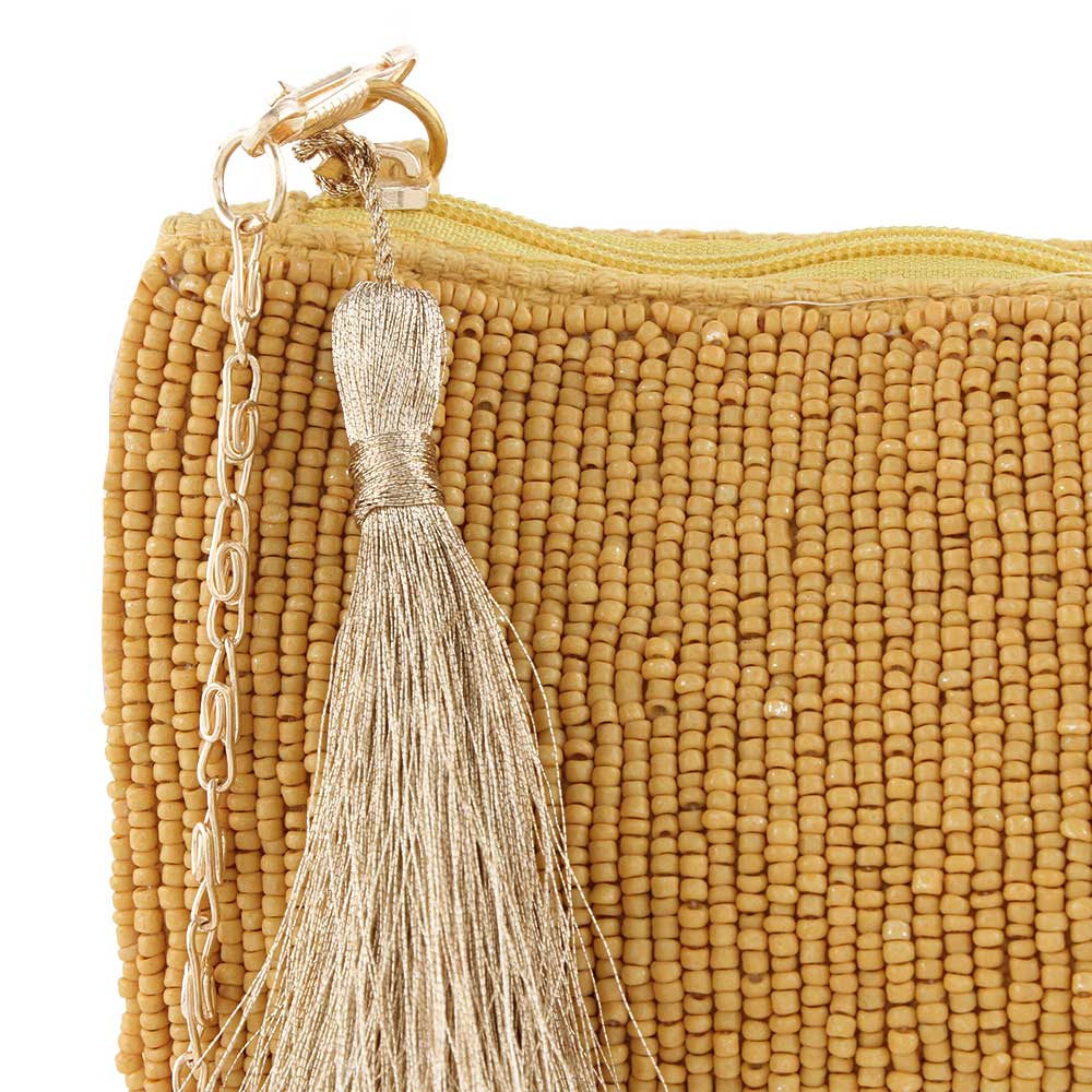 Handmade beige glass bead and cotton clutch purse is beautiful and elegant evening handbag with matching tassle. Suitable For evening dress and ladies skirt.