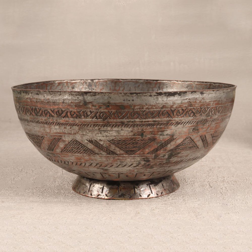 Buy a Bell Metal Singing Bowl online which is a harmonious blend of artistry and spirituality that is meticulously crafted by highly skilled artisans in the rich tradition of Islamic Art. This enchanting meditation bowl is a testament to their craftsmanship, featuring intricate engravings that evoke the beauty of the ancient world. Its antique finish adds a touch of timeless elegance, making it a captivating addition to any space. Handmade from high-quality bell metal, this singing bowl transcends the ordinary, producing resonant tones that create a serene atmosphere ideal for meditation and mindfulness practices. Its versatile charm allows it to grace the interiors of homes, offices, restaurants, hotels, or cafes, serving as both a stunning decorative piece and a functional tool for promoting tranquillity. Beyond its aesthetic allure, the Bell Metal Singing Bowl holds a myriad of uses. It can be employed in meditation sessions to facilitate relaxation, promote focus, and enhance spiritual experiences. Furthermore, the Bell Metal Singing Bowl makes for an exceptional and thoughtful gift. Whether it's a special occasion, a festival, or an auspicious moment, presenting this exquisite bowl to your family, friends or relatives signifies a gesture of serenity, beauty, and cultural appreciation. Embrace the artful synergy of tradition and craftsmanship with this unparalleled Bell Metal Singing Bowl.