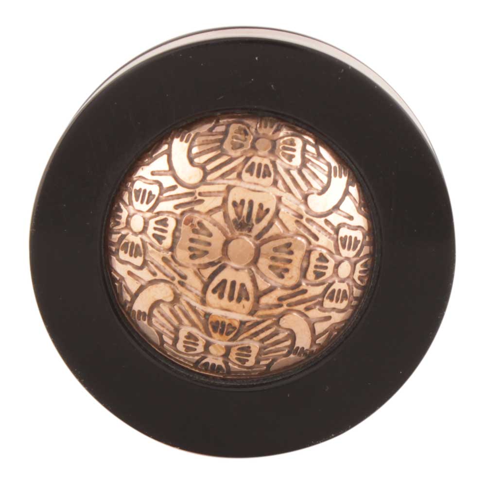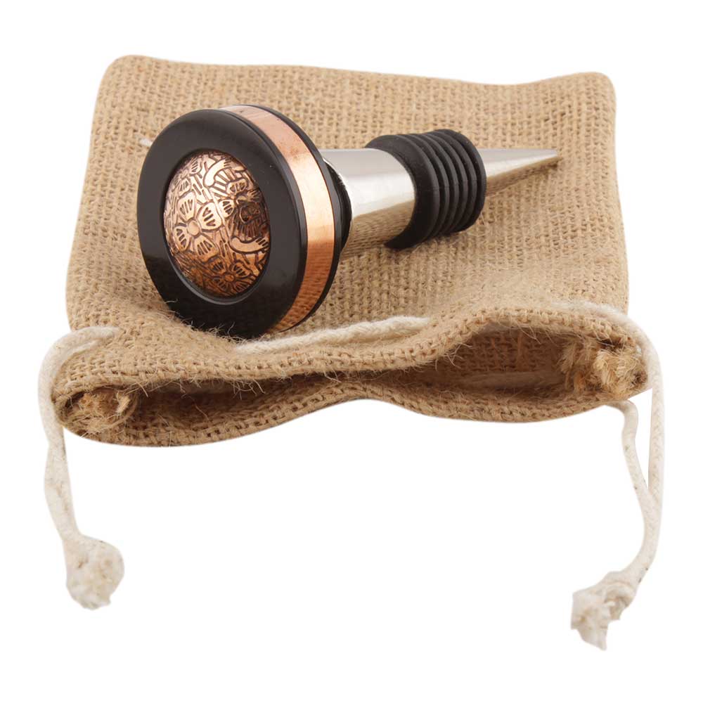 Black And Copper Brass Tiny Flower Resin Wine Stopper. Zinc Alloy Wine Bottle Stopper with Attractive Jute Bag Packaging.