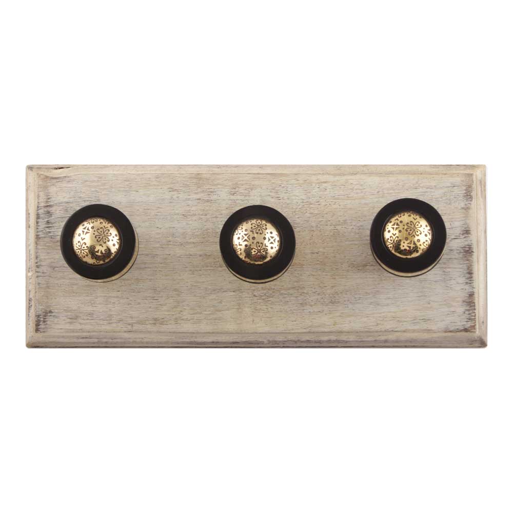 Black And Golden Brass Tiny Flower Resin Wooden Hook. A Perfect Complement to the Soft Tone of the Wood are these White Traditional Hat and Coat Hook Made of Genuine Porcelain and Brass. It can be used to Hang Jewelry, Leashes, Towels, Scarves, Light Weight Sweaters, Caps etc.