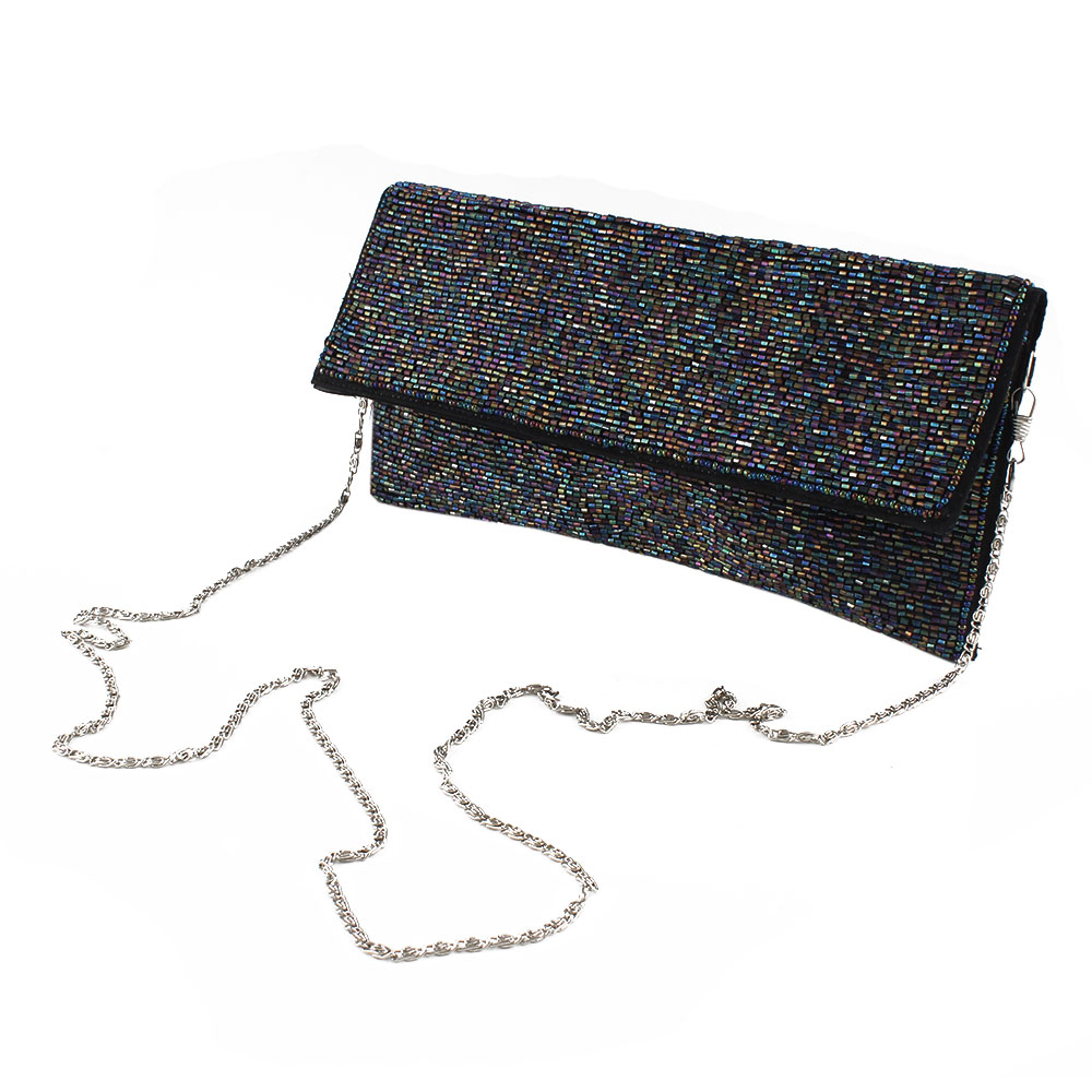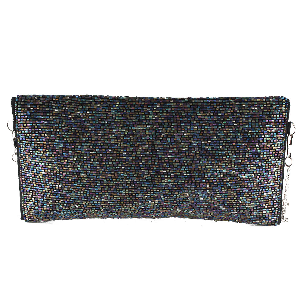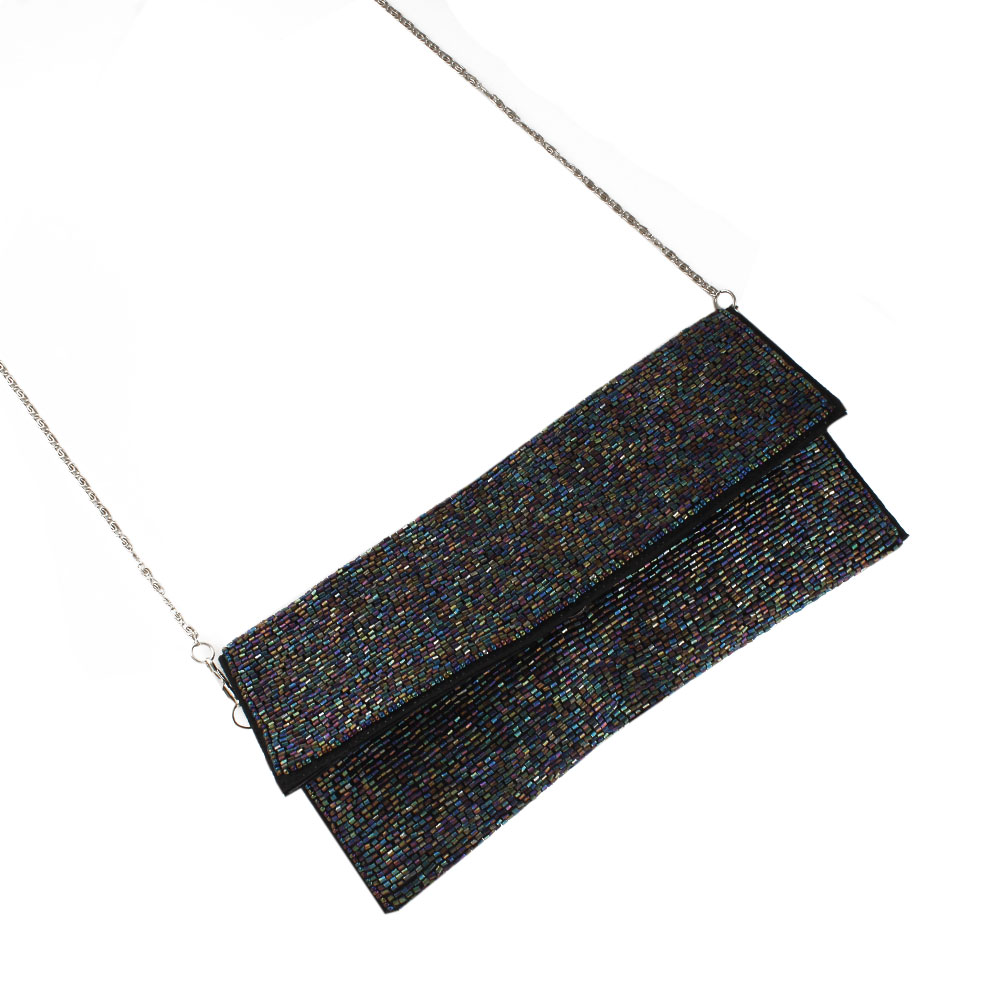 Beaded Sequined Evening Clutch An elegant clutch handbag ornately embellished on the front with turquoise sequins, glass and plastic beads .