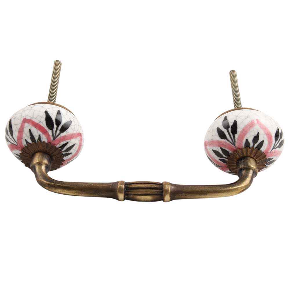Black And Pink Floral Crackle Ceramic Bridge Handle. Ideal for Drawer, Dresser, Cabinet, Wardrobe, Cupboard and Almirah etc.
