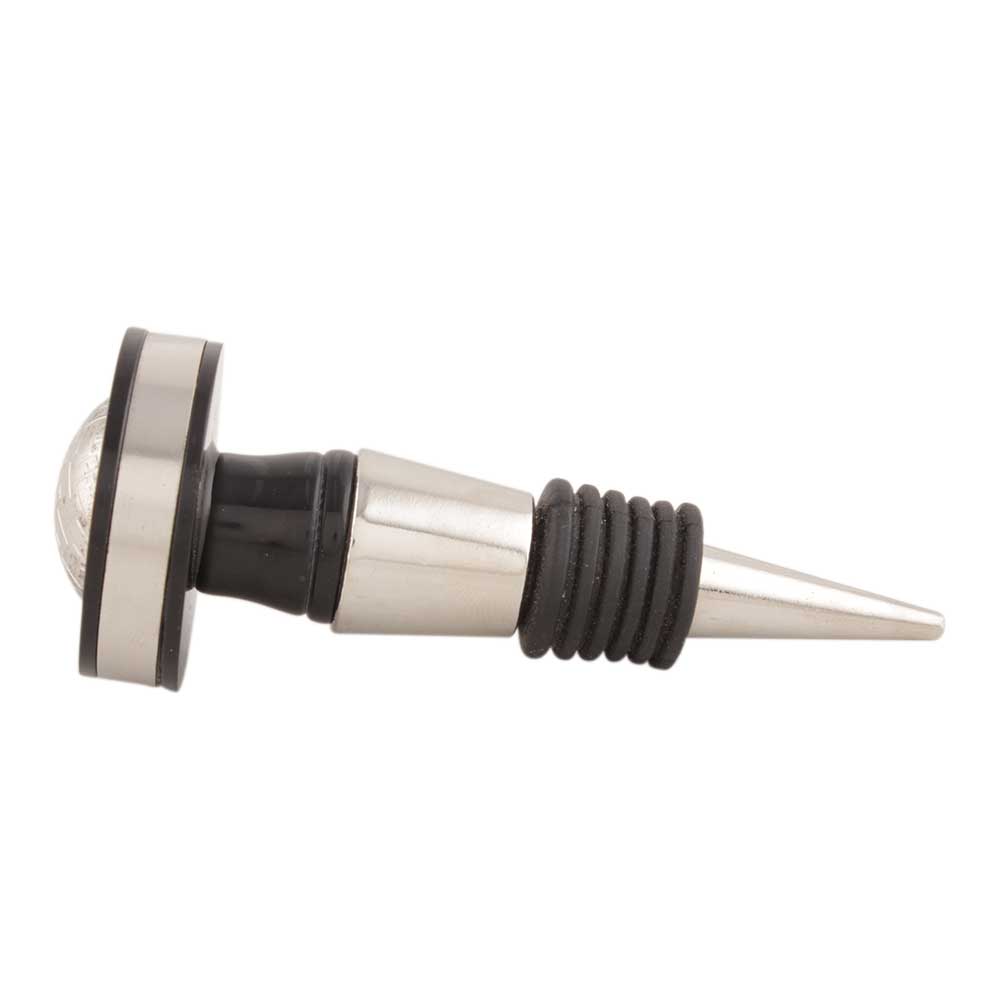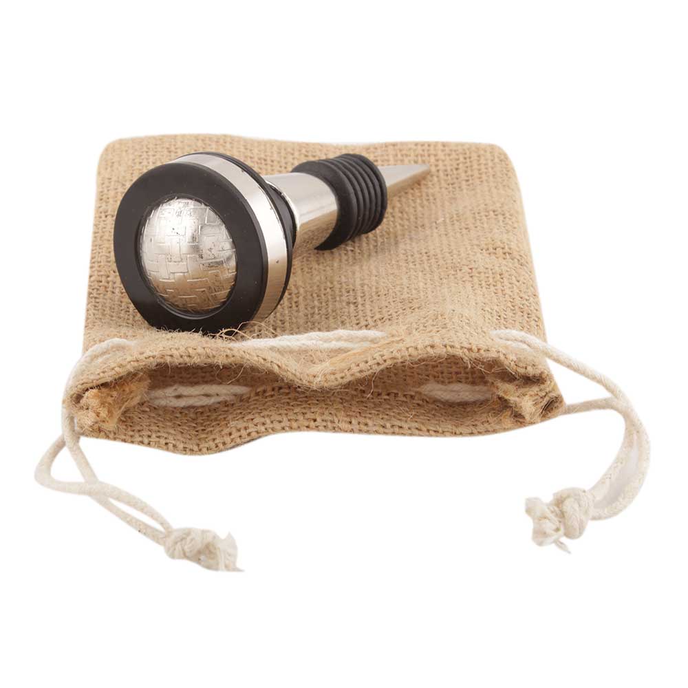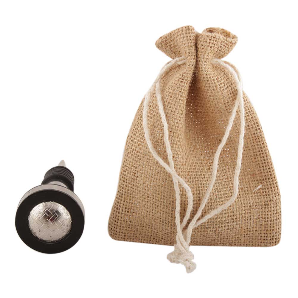 Black And Silver Brass Resin Wine Stopper. Zinc Alloy Wine Bottle Stopper with Attractive Jute Bag Packaging.