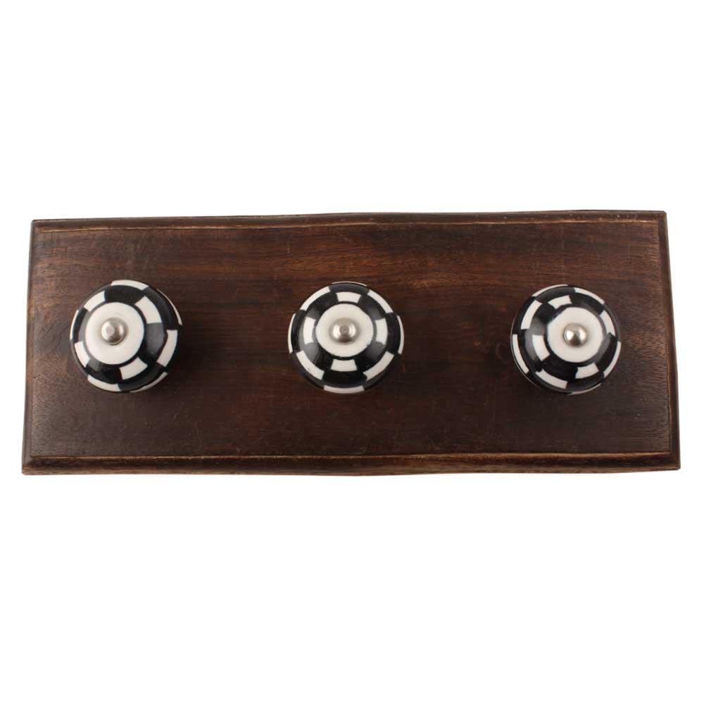 Black And White Ceramic Floral Wooden Hook. A Perfect Complement to the Soft Tone of the Wood are these White Traditional Hat and Coat Hook Made of Genuine Porcelain and Brass. It can be used to Hang Jewelry, Leashes, Towels, Scarves, Light Weight Sweaters, Caps etc.