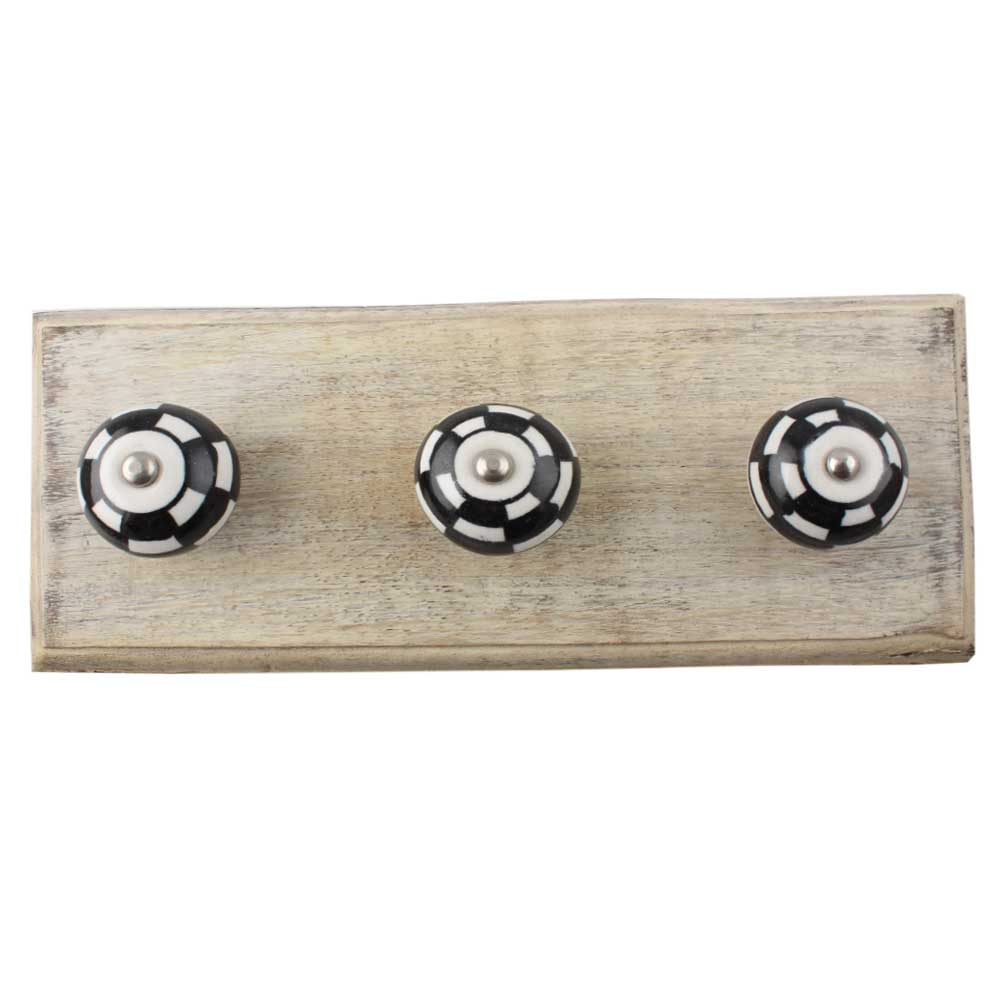 Black And White Ceramic Floral Wooden Hook. A Perfect Complement to the Soft Tone of the Wood are these White Traditional Hat and Coat Hook Made of Genuine Porcelain and Brass. It can be used to Hang Jewelry, Leashes, Towels, Scarves, Light Weight Sweaters, Caps etc.