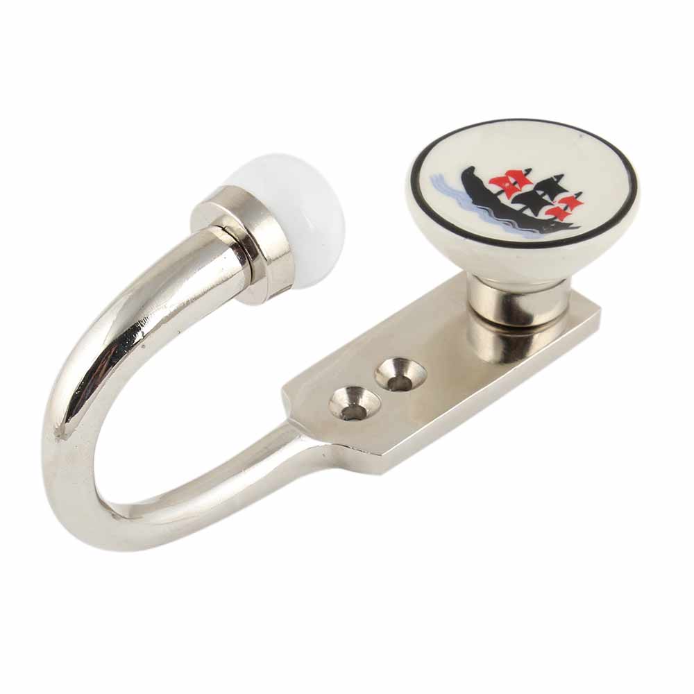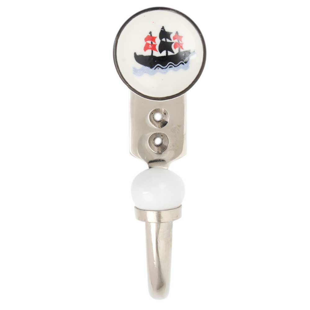 Material: Glazed ceramic boat motif with zinc alloy backplate