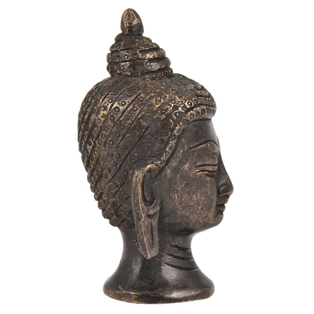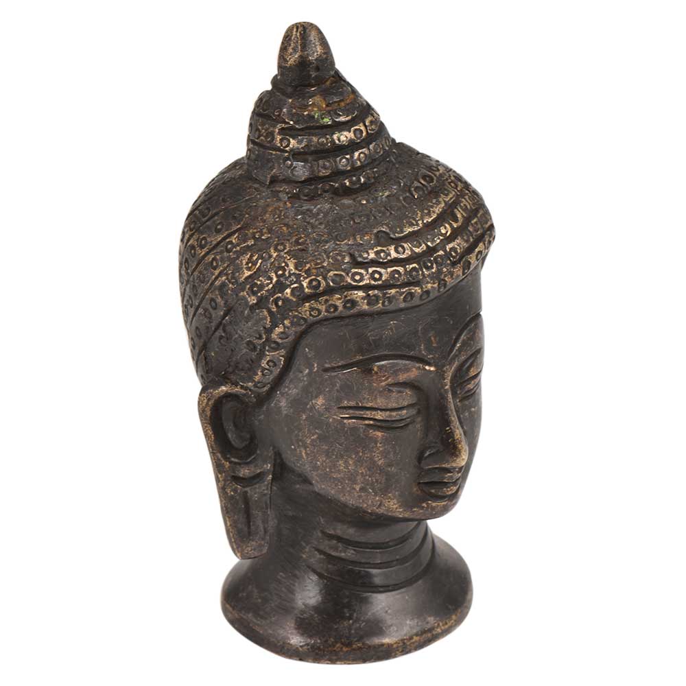 A very Peaceful black brass Buddha face head statue with curly hair tied in a bun and eyes closed in meditation with long hanging earlobes. Gift it to your near and dear ones on diwali, new year , Christmas, new year, wedding gift, birthday gift or house warming gift.