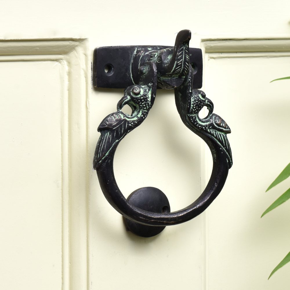 This Brass Door Knockers is a basic and conventional way to greet visitors in any home. Brass Door Knockers would age wonderfully and become a lovely door adornment. Handmade solid brass door knocker in the shape of an elephant head with peacock figurines on the ring will look lovely on the entrance door or other doors as well. It comes with a lovely black finish.