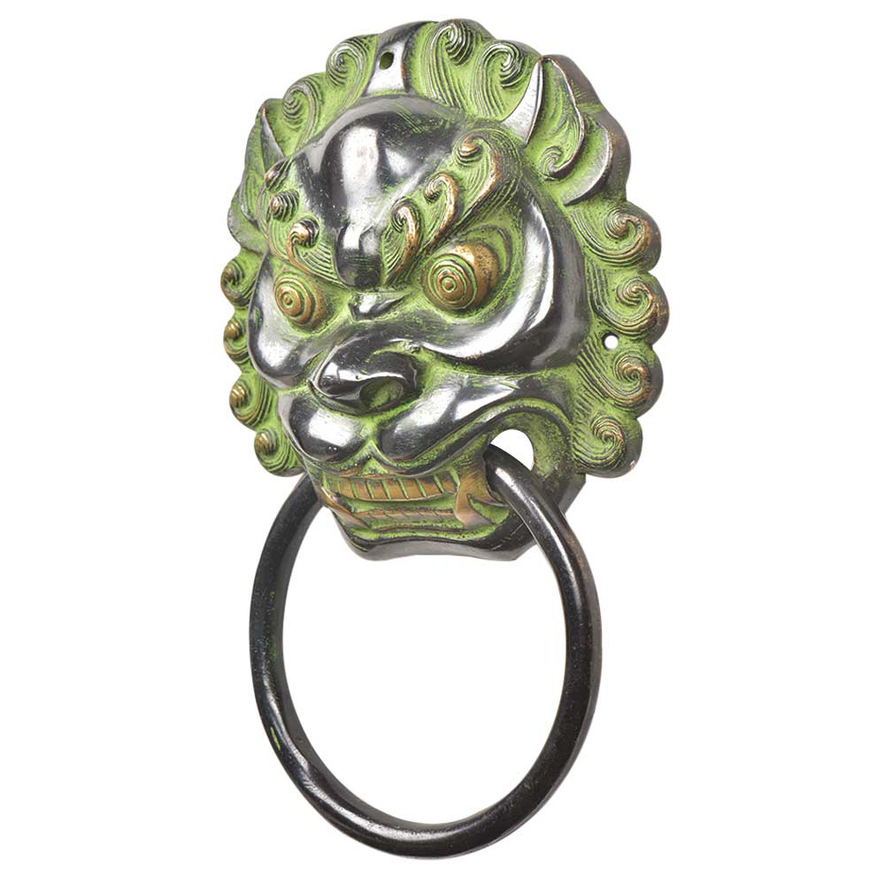 Inspired by ancient Chinese and Eastern mythology, the Foo Fu dog—often referred to as a lion dog or guardian lion—is believed to protect homes and ward off evil spirits. This lion-headed design is crafted with incredible attention to detail, making it both an eye-catching decorative feature and a meaningful symbol of protection. The patina finish highlights the knocker's intricate detailing, giving it a rich and timeless aesthetic that stands the test of time.