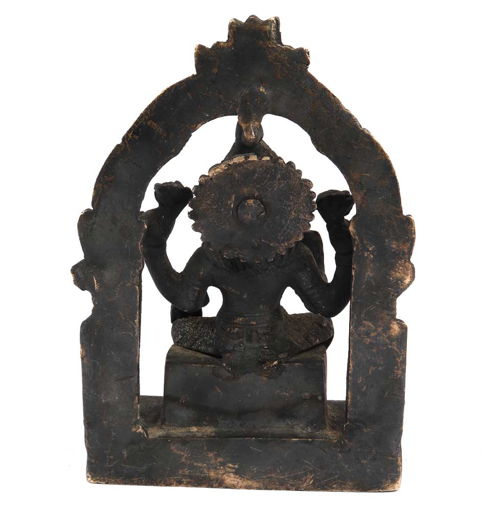 Black Brass Goddess Laxmi Statue On Chowki And Prabhavali .The Goddess Lakshmi is Shown Having Four Arms and Sometimes Standing on a Blooming Lotus Flower and used for worship ,House warming , Office / Shop Inauguration gift,Grah pravesh and Corporate Gifts.