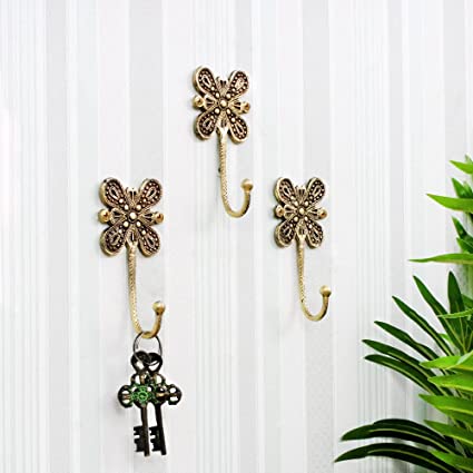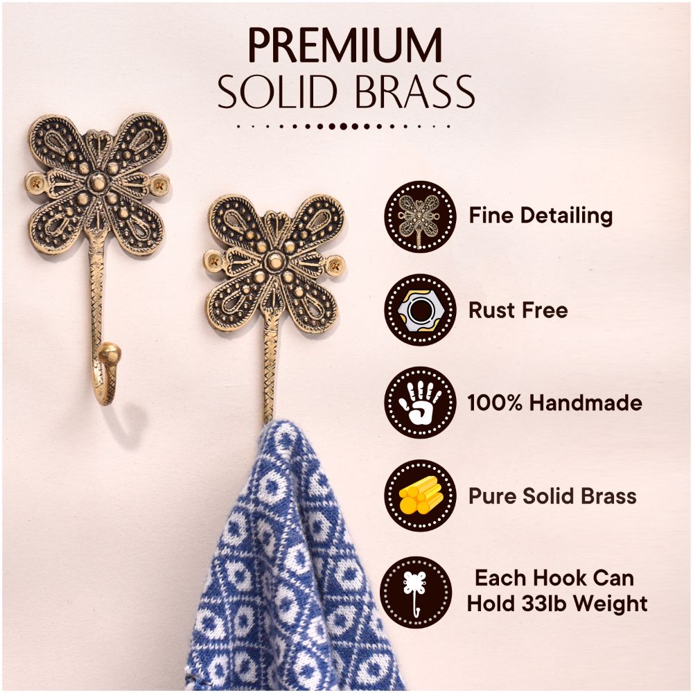 Ornate brass floral tribal towels, ties, belts, purses, and other items can be hung on a single wall hook. To give beauty and charm to the wall, hang it near your kitchen sink or near the wash basin. It has a black patina on it.