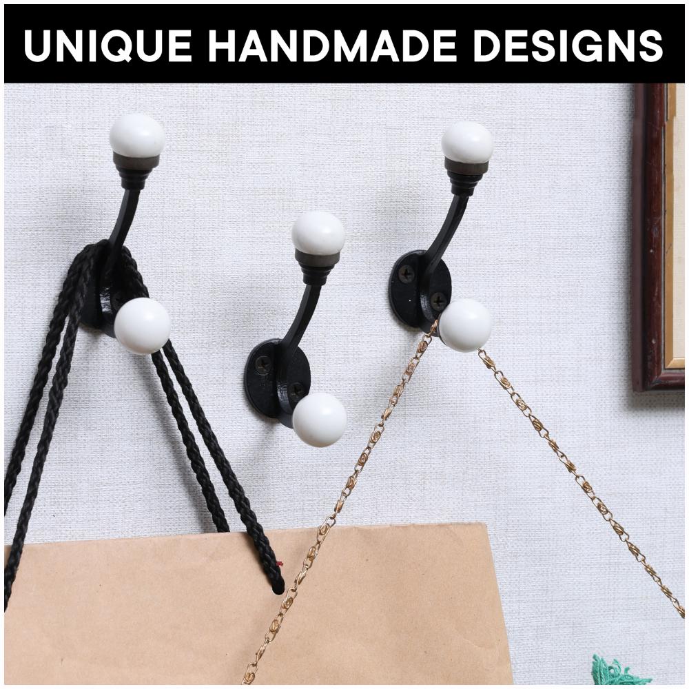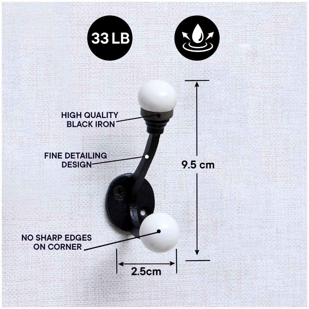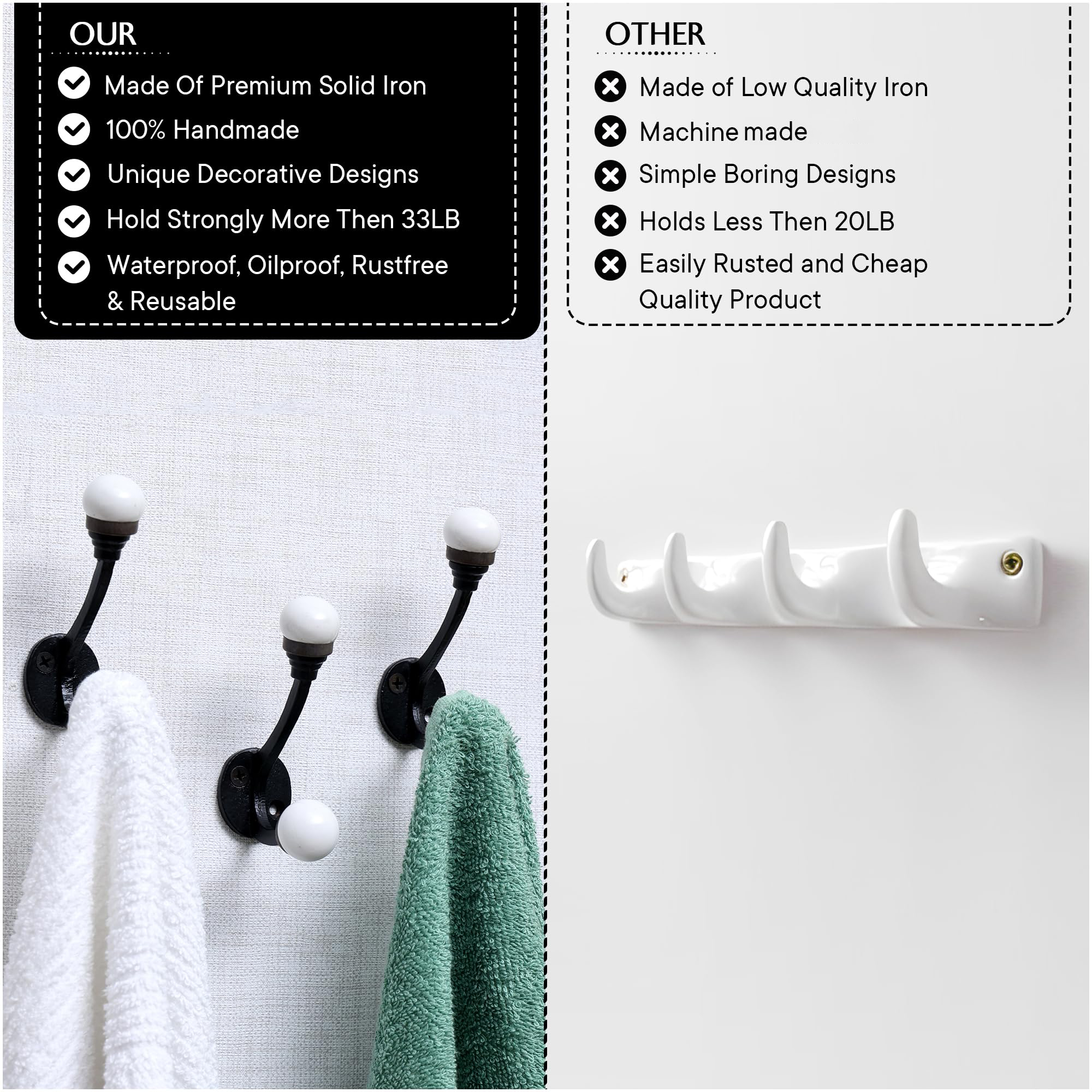 Black Double Loop Ceramic Iron Hook . When Put on Wall or Cabinet It is An Art in Itself. This Hook is Strong Enough to Hold Your Cloths, Keys, Tea Cups, Coffee Mugs, Hand Towels Etc.