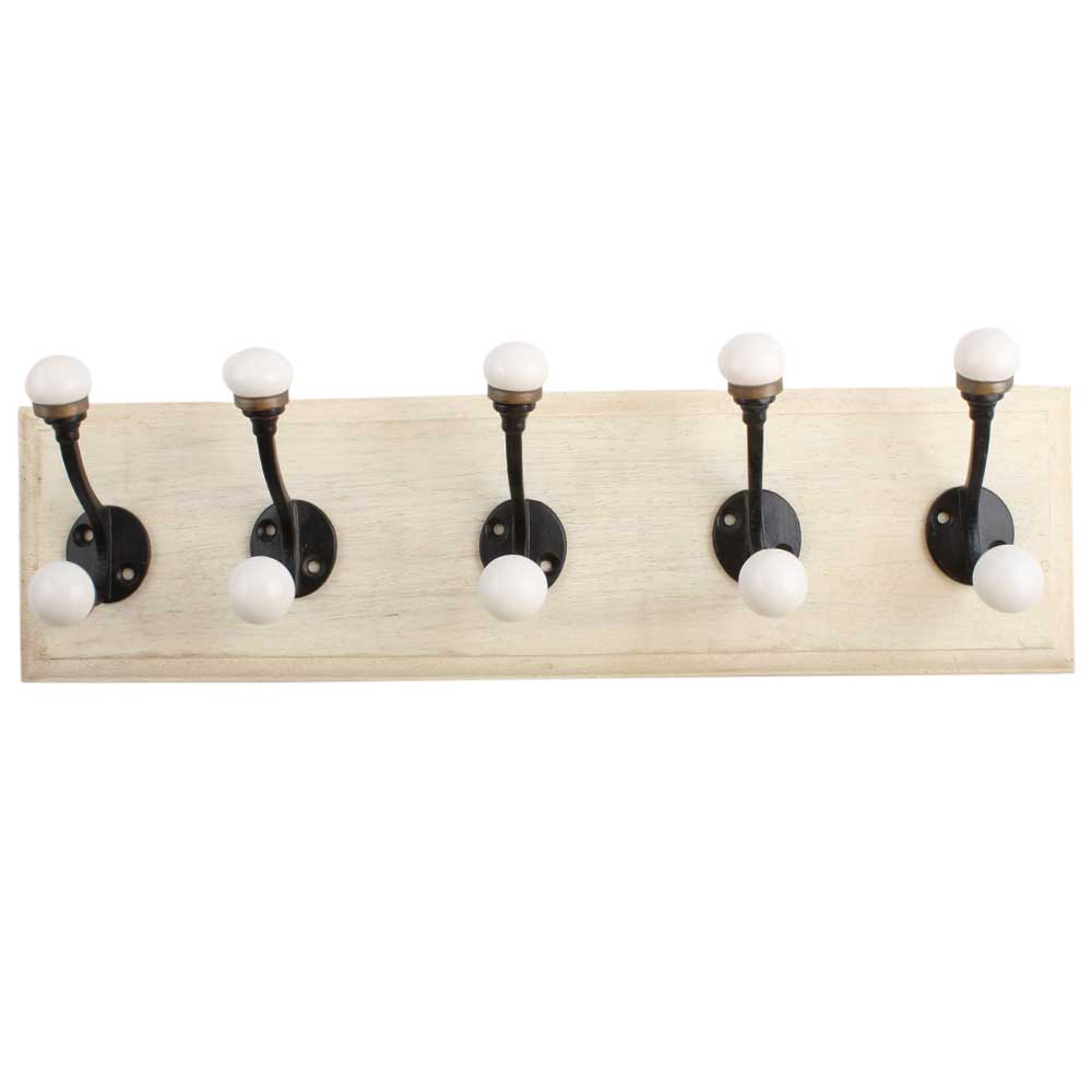 Black Double Loop Ceramic Iron Wooden Hook. A Perfect Complement to the Soft Tone of the Wood are these White Traditional Hat & Coat Hook Made of Genuine Porcelain and Brass. It can be use to Hang Jewellery, Leashes, Towels, Scarves, Light Weight Sweaters, Caps Etc.