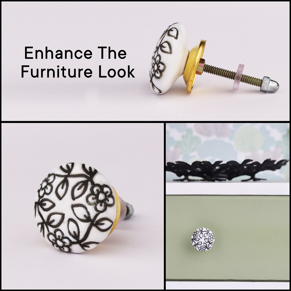 Handmade Ceramic Furniture Knobs. Ideal for Drawer, Dresser, Cabinet, Wardrobe, Cupboard and Almirah.