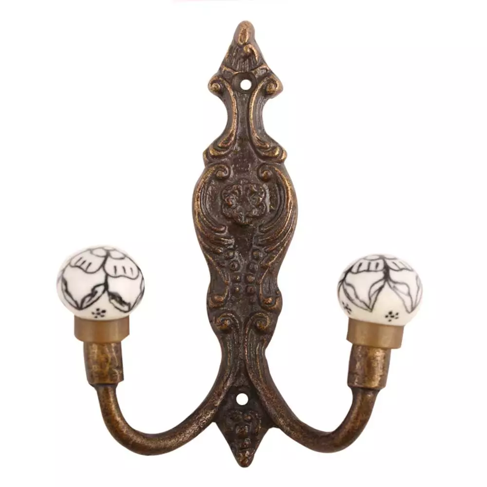 Whether your space leans toward rustic, vintage, industrial, or eclectic, these hooks fit seamlessly into a variety of design schemes. The floral pattern offers a soft, refined look that balances beautifully with the more industrial iron base. This versatility allows these hooks to enhance any room, from your bedroom to the bathroom, or even your mudroom.