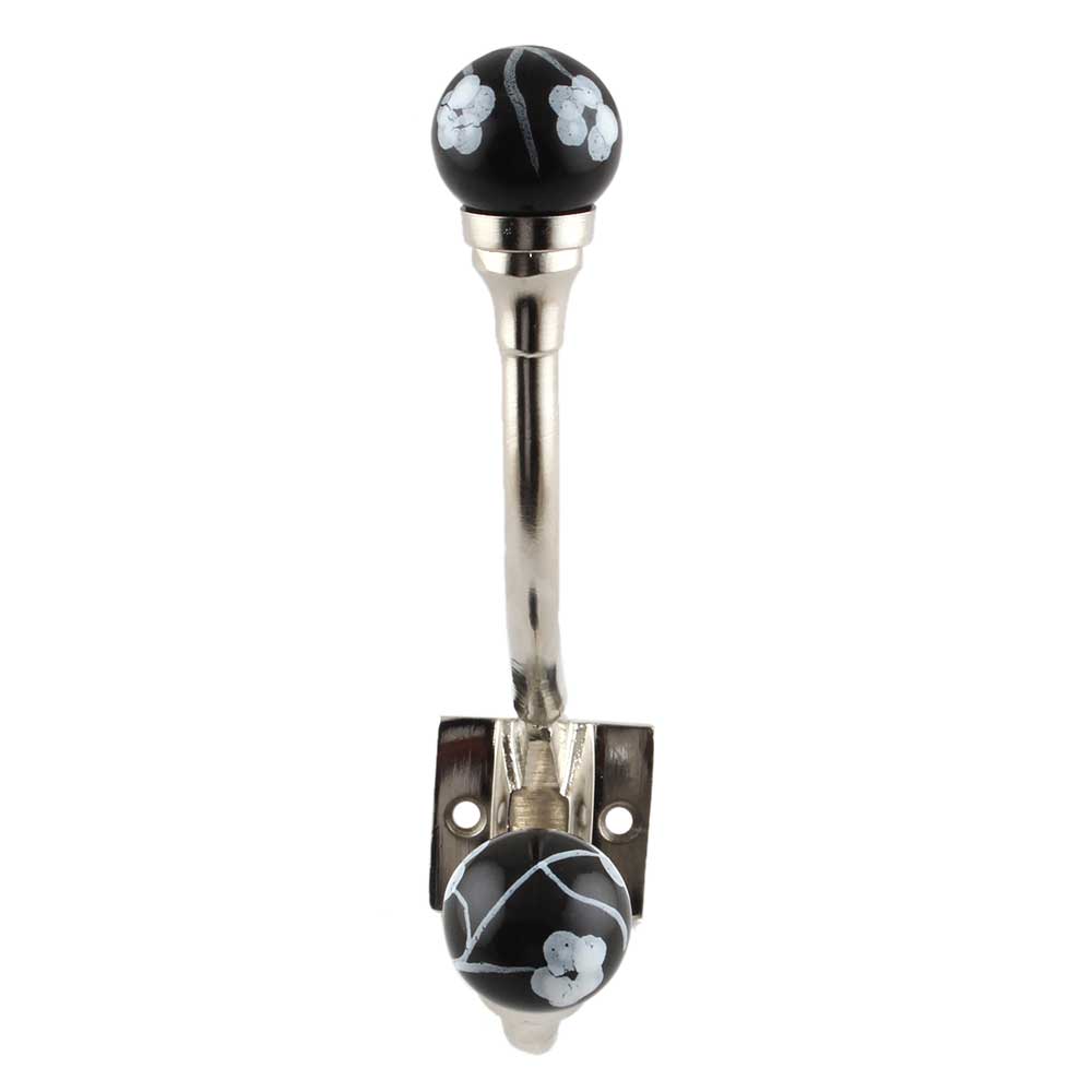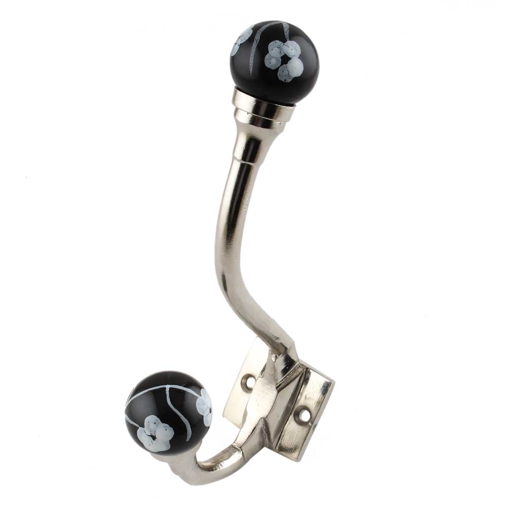 Black Floral Ceramic Iron Hooks. When Put on Wall or Cabinet It Gives A Sturdy Look. This Hook is Strong Enough to Hold Your Cloths, Keys, Tea Cups, Coffee Mugs, Hand Towels etc.
