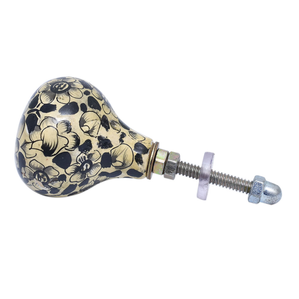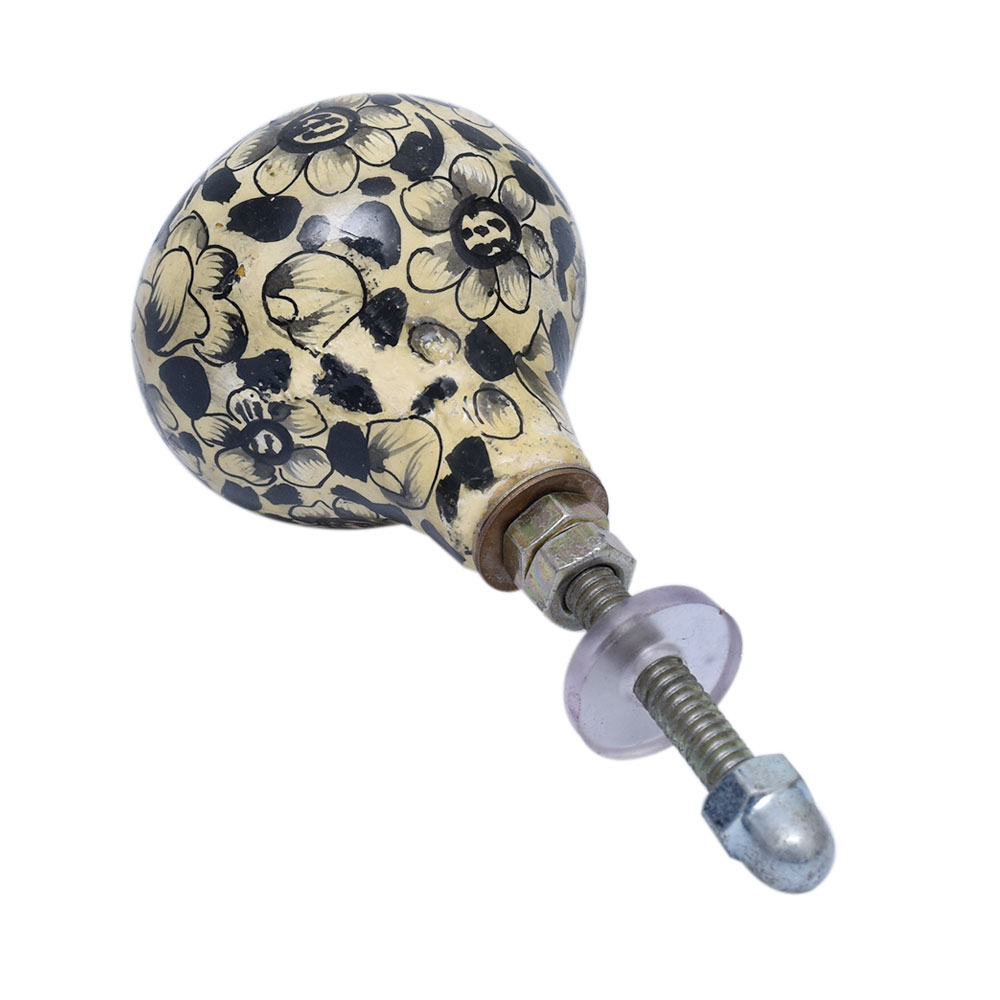 Add a touch of Indian artistry to your furniture with the Black Floral Hand Painted Indian Kashmiri Cabinet Knobs. These exquisite knobs feature a stunning floral design hand-painted by skilled Kashmiri artisans, providing your furniture with a beautiful and traditional touch. The elegant black base with contrasting floral accents makes these knobs a standout piece in any room.