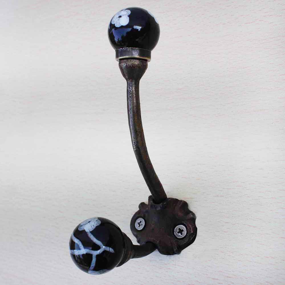 Black Floral Iron Hook-Ehg-18. When Put on Wall or Cabinet It Gives A Sturdy Look. This Hook is Strong Enough to Hold Your Cloths, Keys, Tea Cups, Coffee Mugs, Hand Towels Etc.