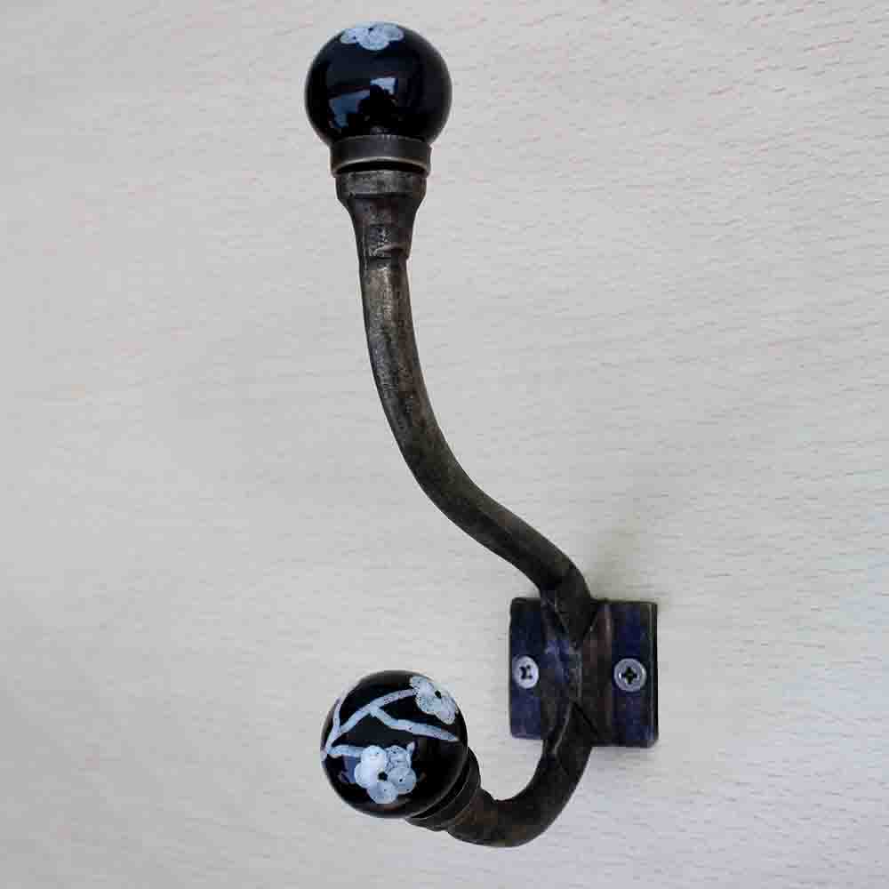 Black Floral Iron Hook-Ehg-18. When Put on Wall or Cabinet It Gives A Sturdy Look. This Hook is Strong Enough to Hold Your Cloths, Keys, Tea Cups, Coffee Mugs, Hand Towels Etc.