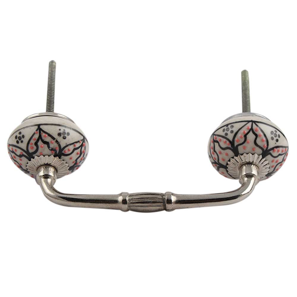 Black Flower Ceramic Bridge Cabinet Handle. Ideal for Drawer, Dresser, Cabinet, Wardrobe, Cupboard and Almirah.