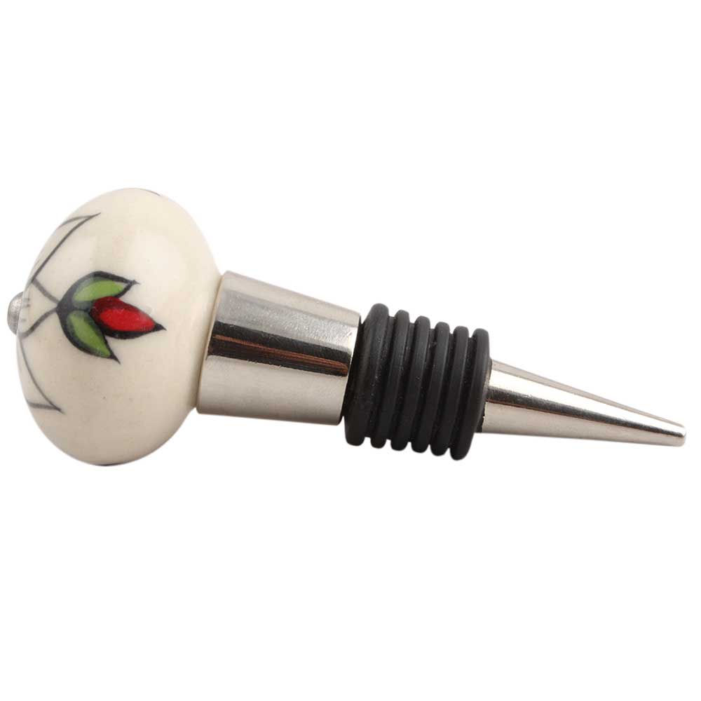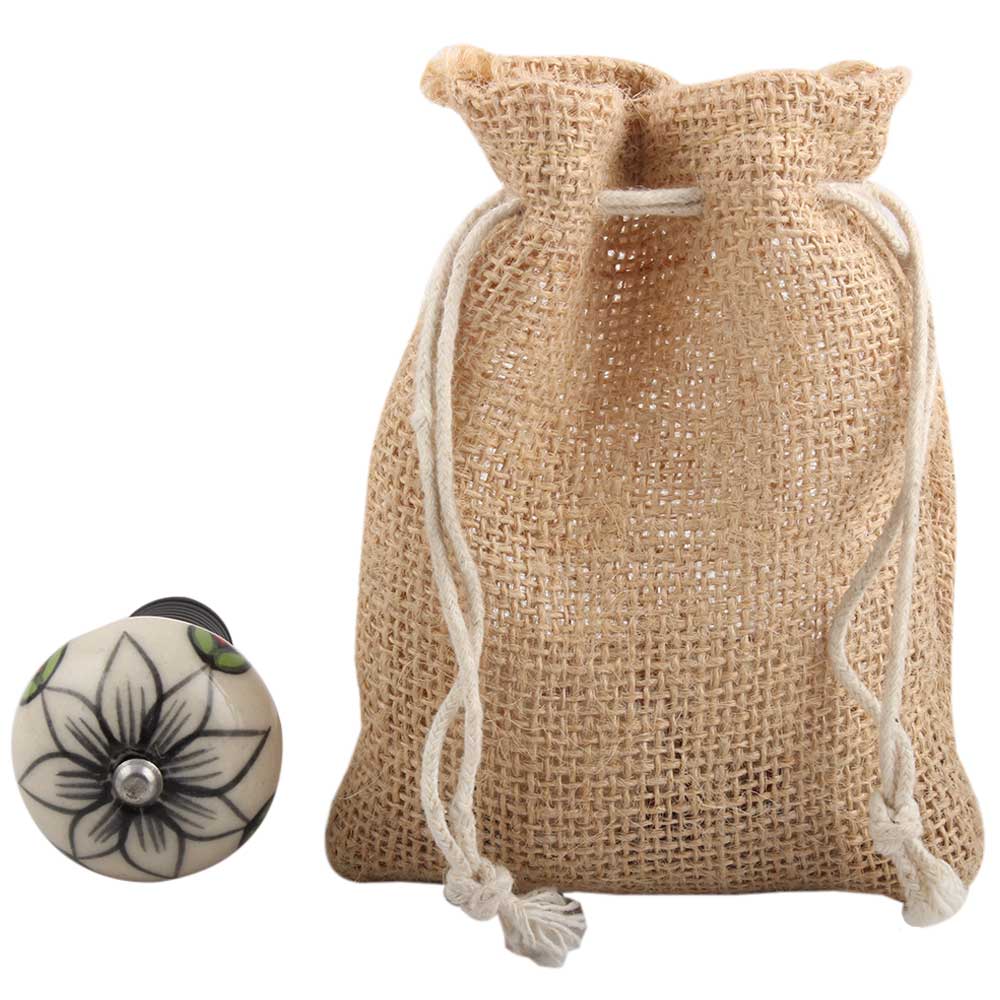 Black Flower Ceramic Wine Stopper.zinc alloy wine bottle stopper with attractive Jute Bag Packaging.