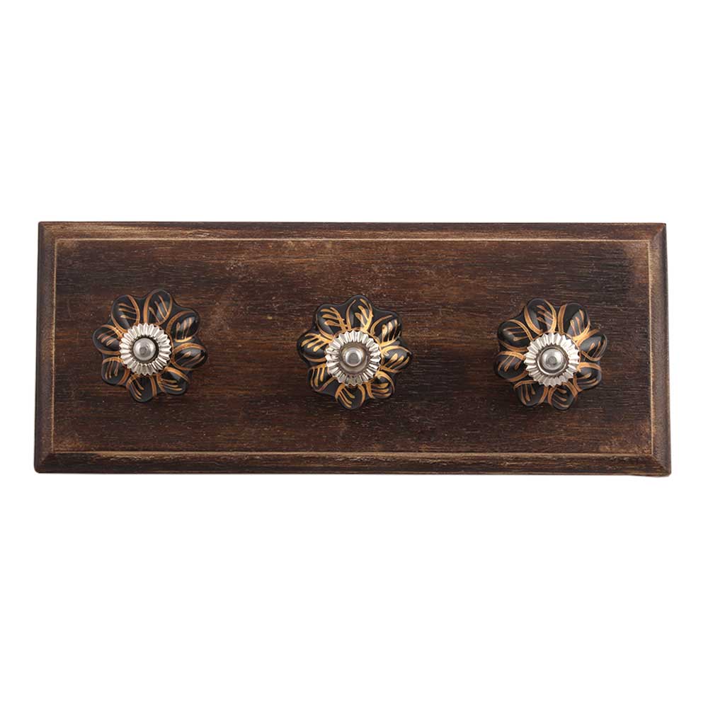 Black Golden Leaf Big Melon Ceramic Wooden Hook. A Perfect Complement to the Soft Tone of the Wood are these White Traditional Hat & Coat Hook Made of Genuine Porcelain and Brass. It can be use to Hang Jewellery, Leashes, Towels, Scarves, Light Weight Sweaters, Caps Etc.