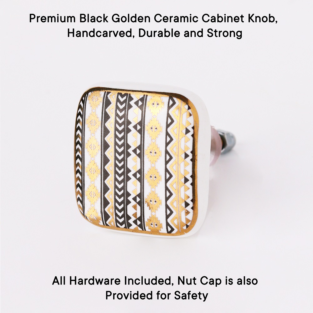 Black Golden Square Ceramic Cabinet Knob for Elegant Furniture