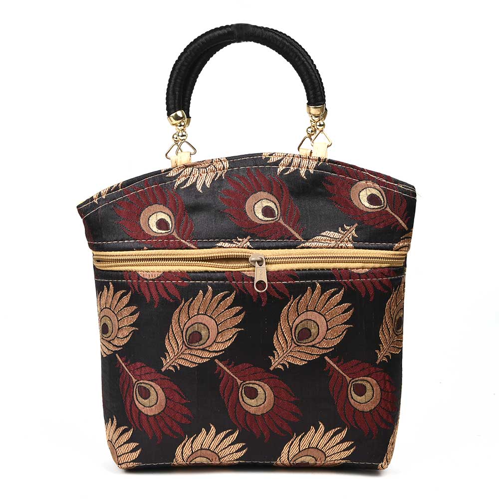 Hand Bag - Peacock Feather with Zari.Makes an excellent thamboolam gift bag for wedding, mehandi, sangeeth, baby shower etc.