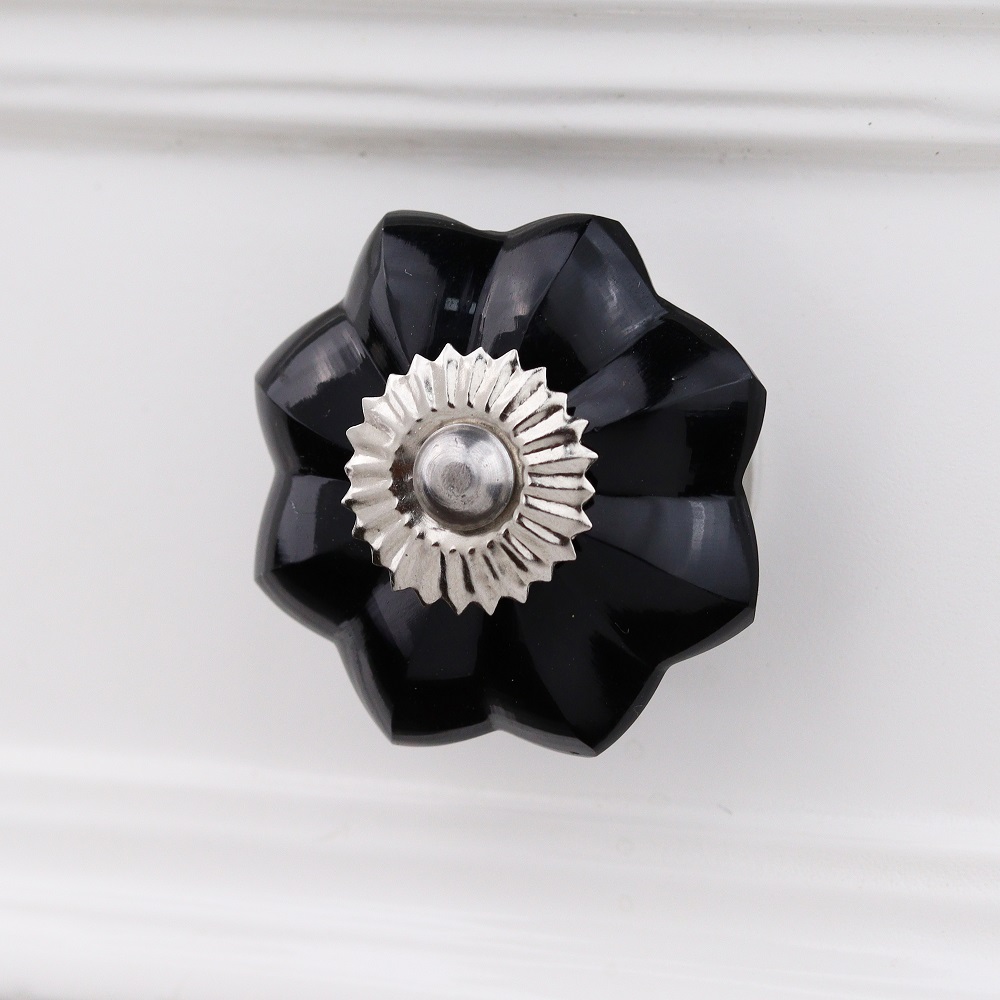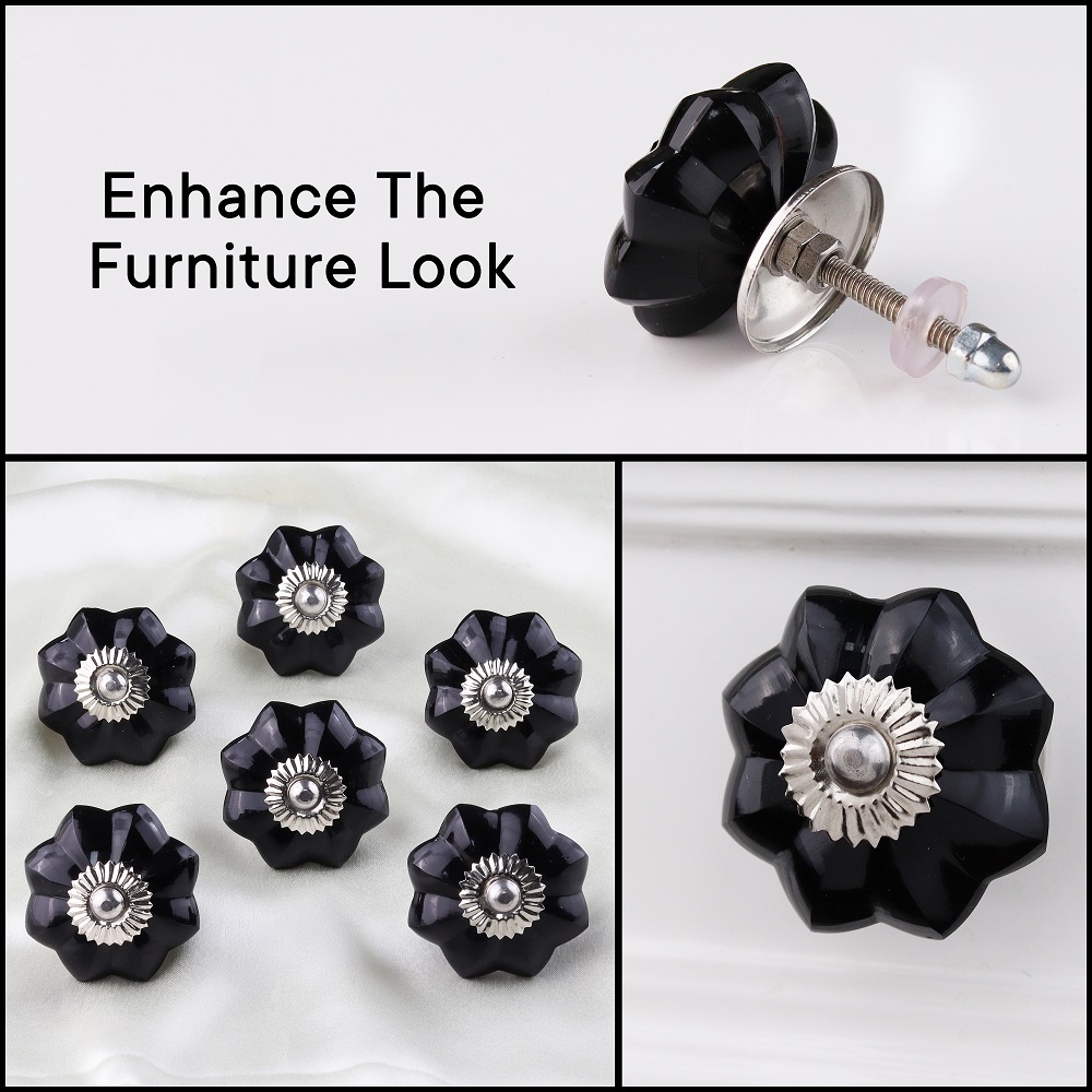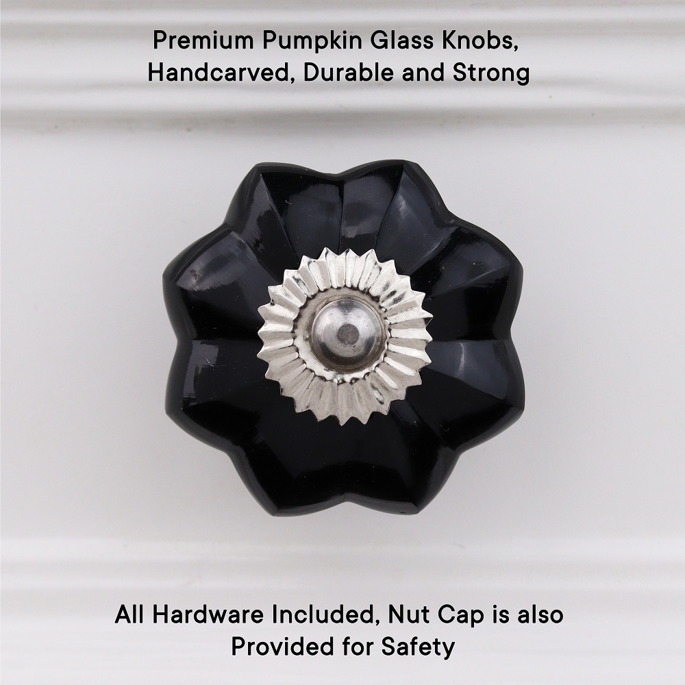 Black Melon Glass Knobs, Big. Ideal for Drawer, Dresser, Cabinet, Wardrobe, Cupboard and Almirah.