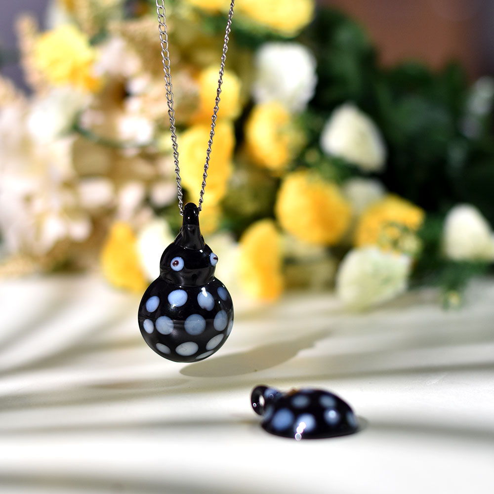 Bring a touch of whimsy and nature-inspired beauty to your jewelry with this Black Ladybug Glass Pendant, lovingly handcrafted through the traditional lampwork technique. Designed to resemble a charming ladybug, this pendant combines glossy black tones with delicate glass artistry, creating a piece that’s both playful and elegant. Perfect for adding a cheerful accent to your look or gifting to someone who adores handcrafted jewelry with personality.
