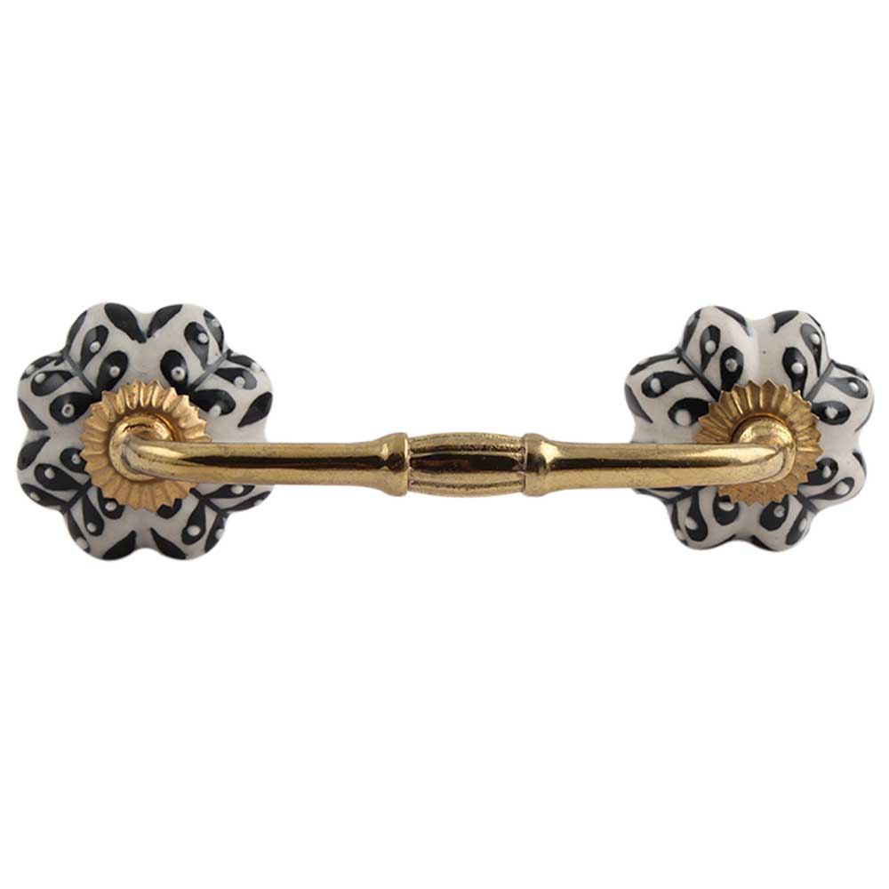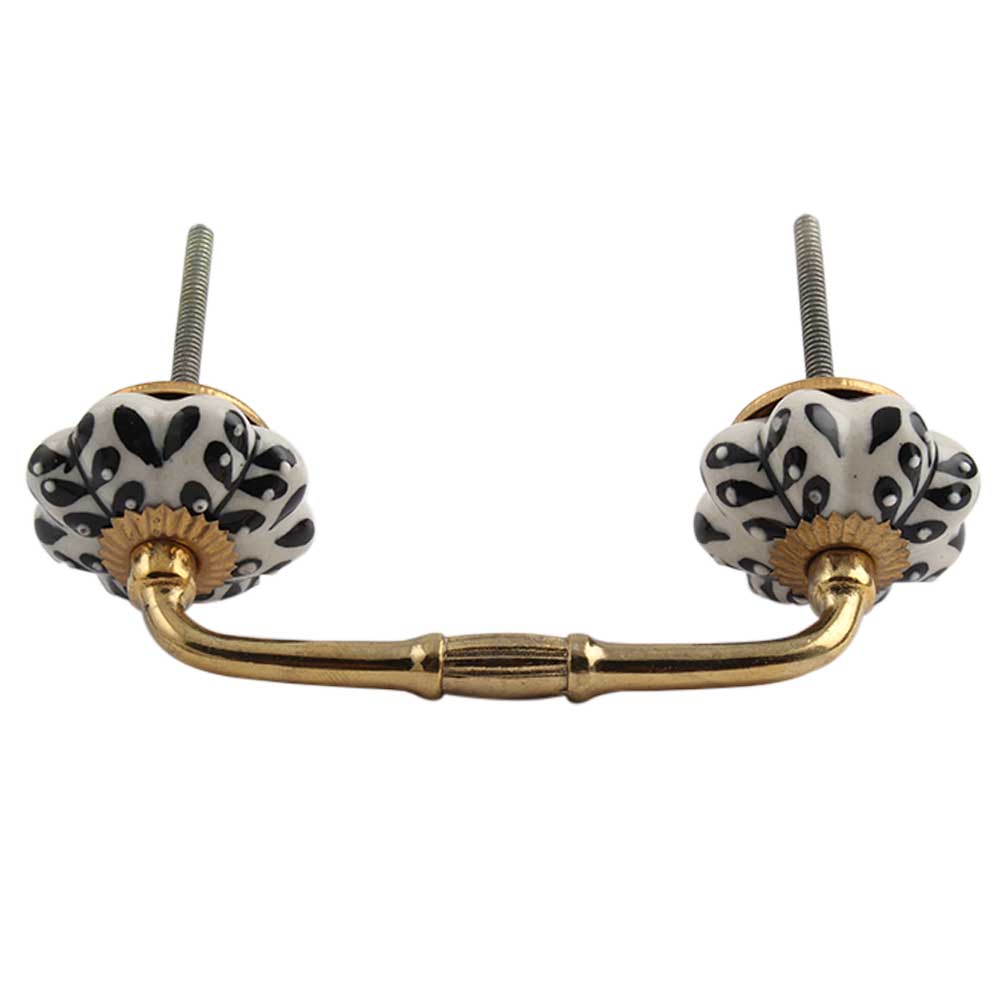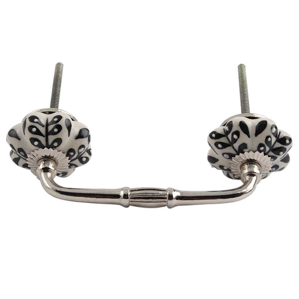 Black Leaf Ceramic Bridge Drawer Handle. Ideal for Drawer, Dresser, Cabinet, Wardrobe, Cupboard and Almirah.