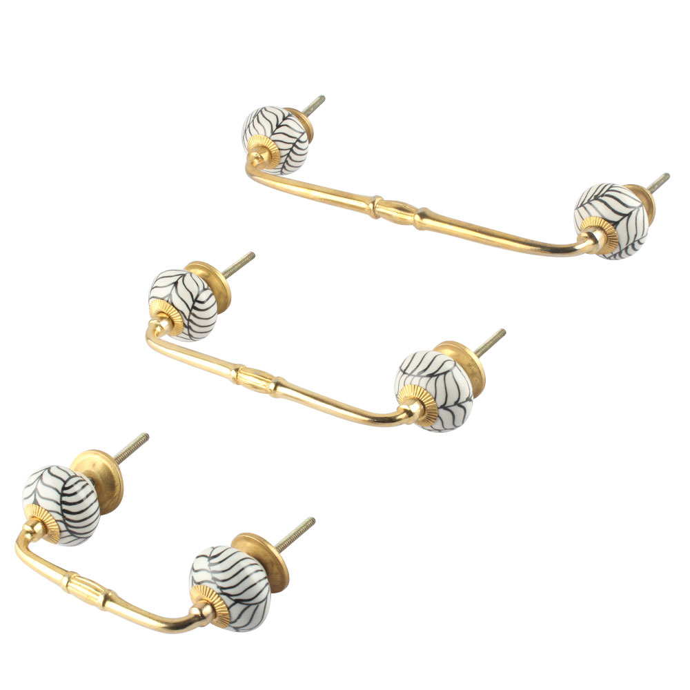 Black Leaf Ceramic Bridge Handle. Ideal for Drawer, Dresser, Cabinet, Wardrobe, Cupboard and Almirah.