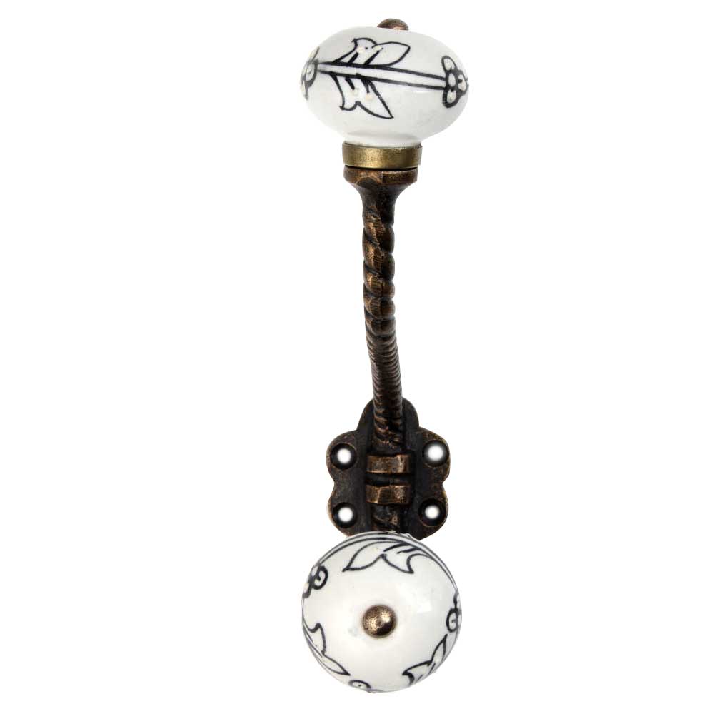 The bold black floral motif etched into the ceramic knob adds contrast and elegance, making this a decorative hook that stands out while blending into a wide range of decor styles.