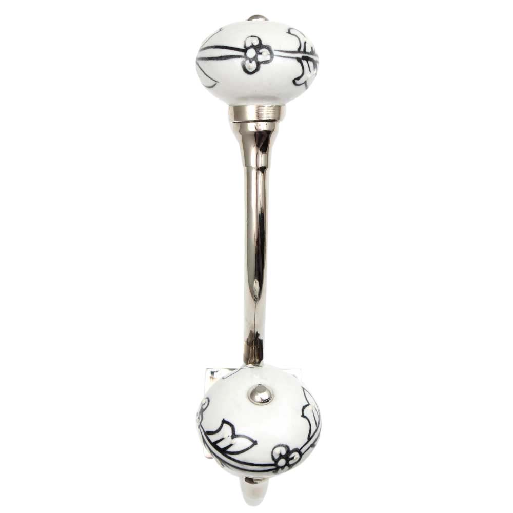 Bring nature-inspired elegance to your walls with the Black Leaf Ceramic Floral Silver Iron Hook. Handcrafted with a delicate floral leaf motif in black-glazed ceramic, this wall hook adds a refined, organic touch to any room. The ceramic floral knob sits atop a sleek silver iron base, offering a balance of artistry and strength. Each hook is individually crafted, making it a standout piece that turns functional wall storage into decor.