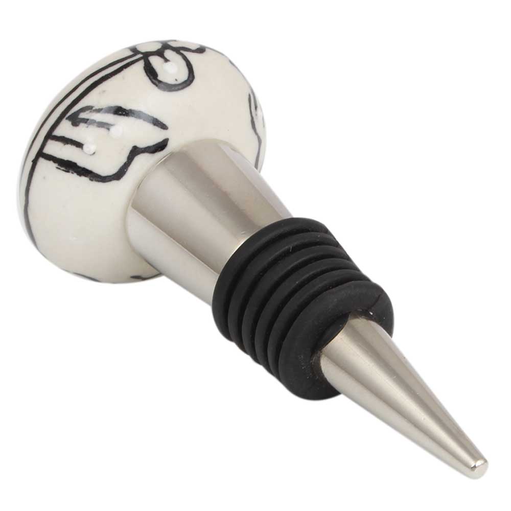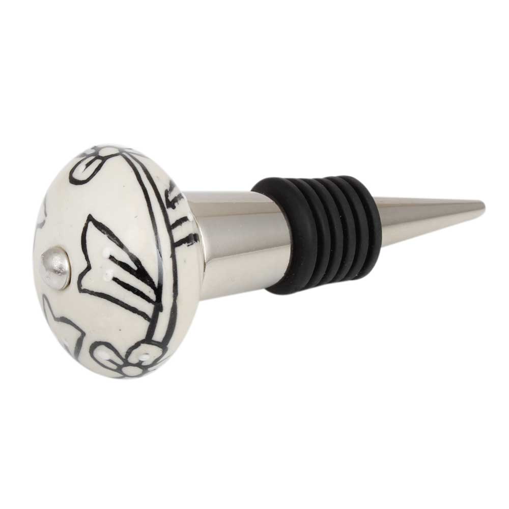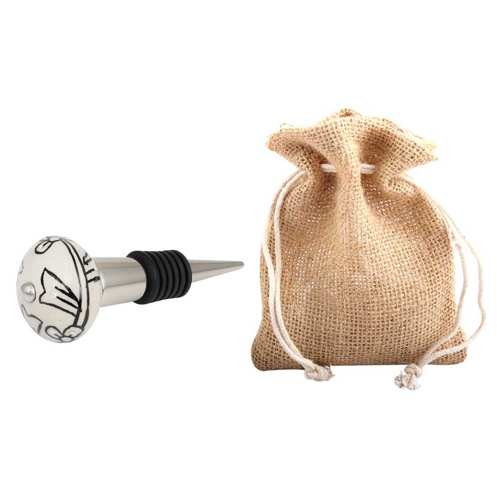 Black Leaf Ceramic Floral Wine Bottle Stopper. Zinc Alloy Wine Bottle Stopper with Attractive Jute Bag Packaging.