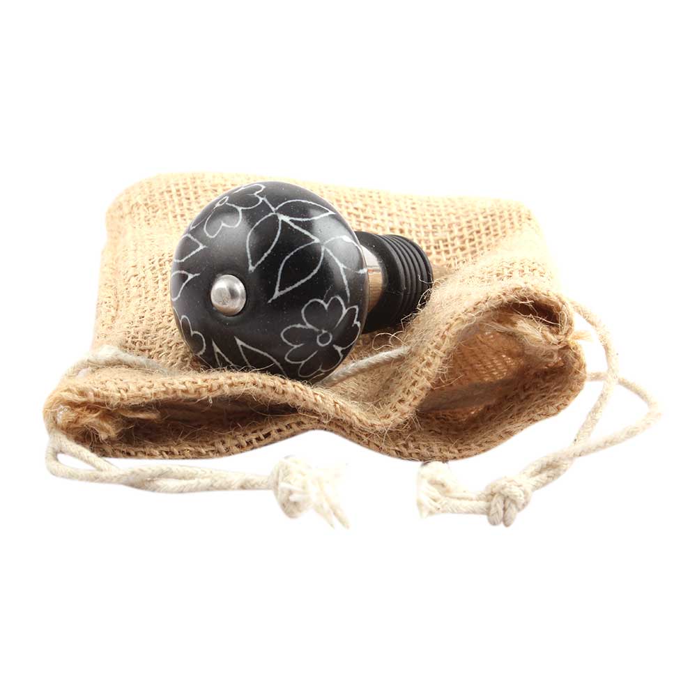 Black Leaf Floral Ceramic Wine Stopper.zinc alloy wine bottle stopper.