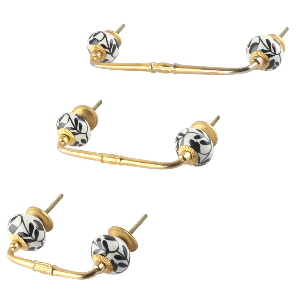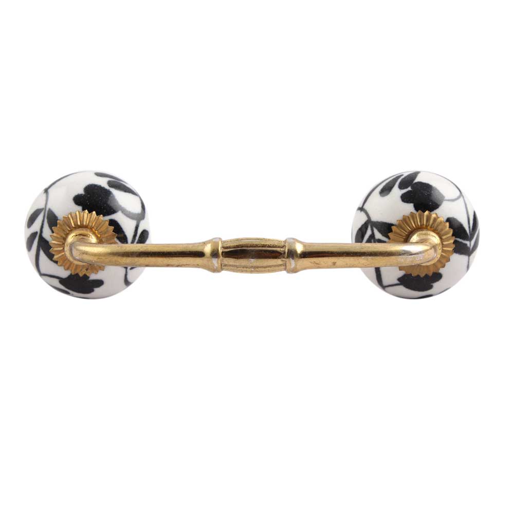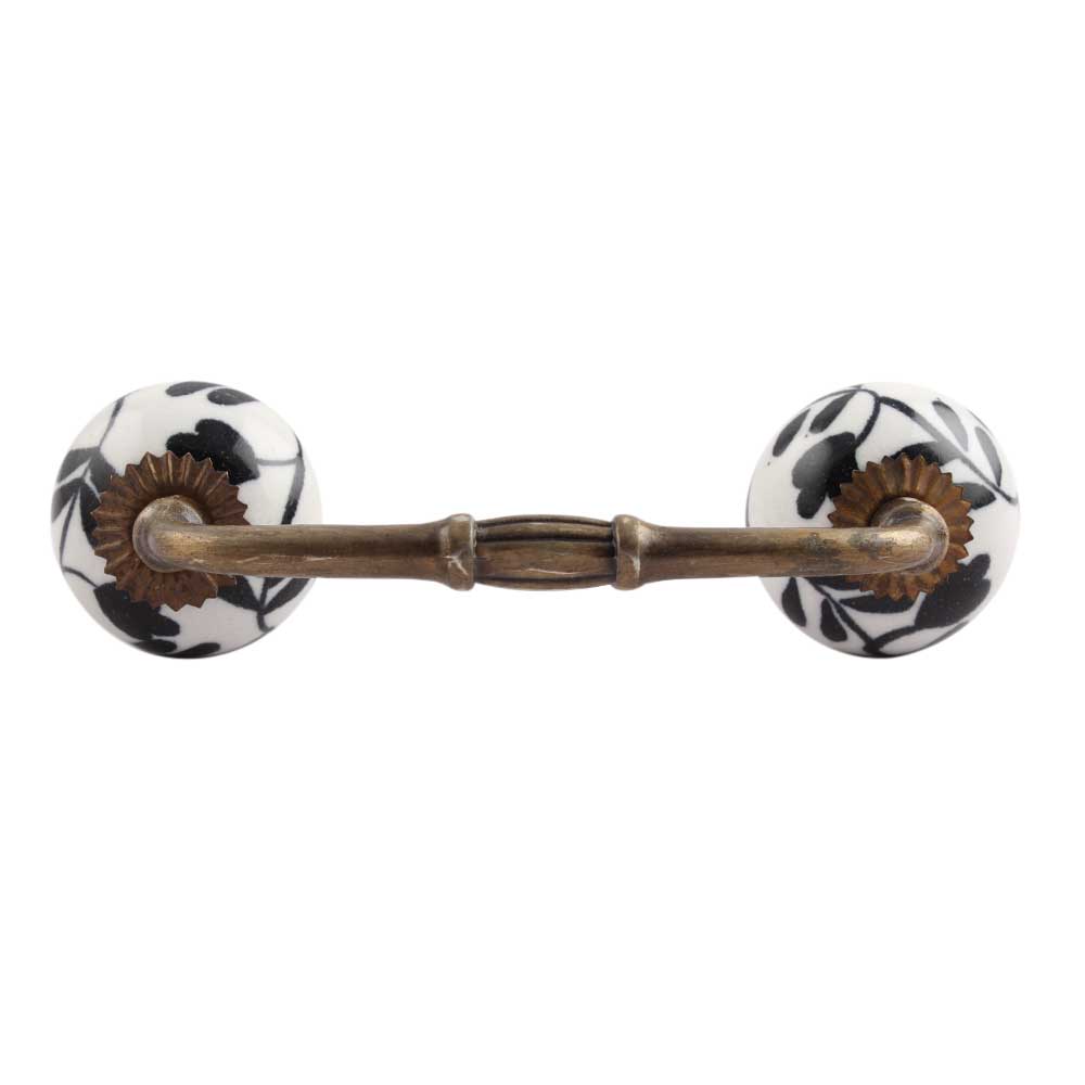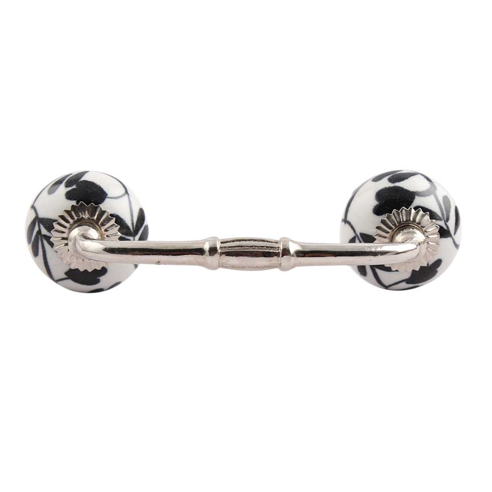 Black Leaf Flower Ceramic Bridge Handle. Ideal for Drawer, Dresser, Cabinet, Wardrobe, Cupboard and Almirah.