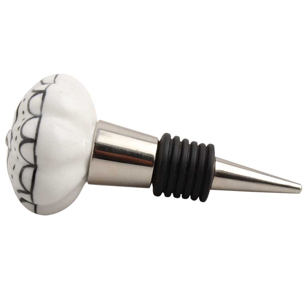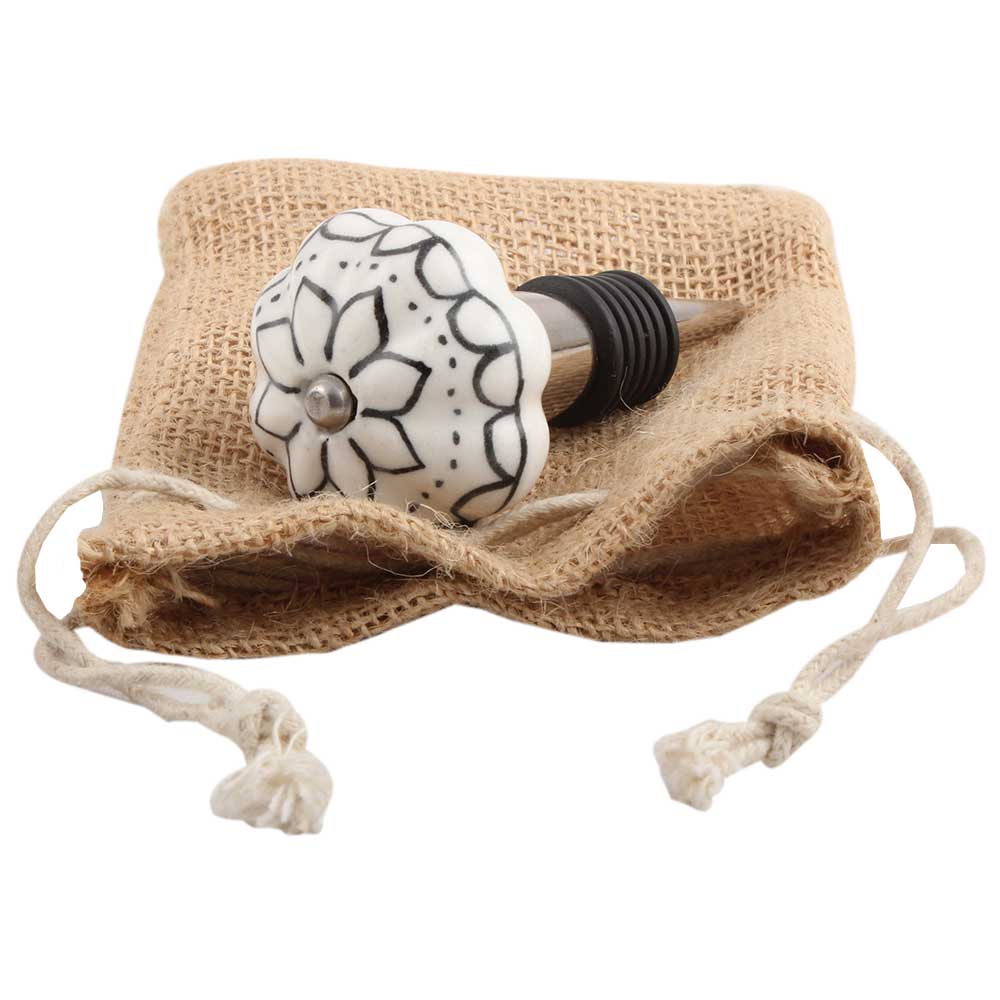 Black Lotus Ceramic Melon Wine Stopper.zinc alloy wine bottle stopper with attractive Jute Bag Packaging.