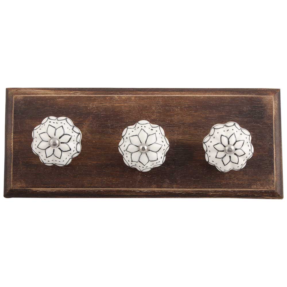 Black Lotus Ceramic Melon Wooden Hook. A Perfect Complement to the Soft Tone of the Wood are these White Traditional Hat & Coat Hook Made of Genuine Porcelain and Brass. It can be use to Hang Jewellery, Leashes, Towels, Scarves, Light Weight Sweaters, Caps Etc.