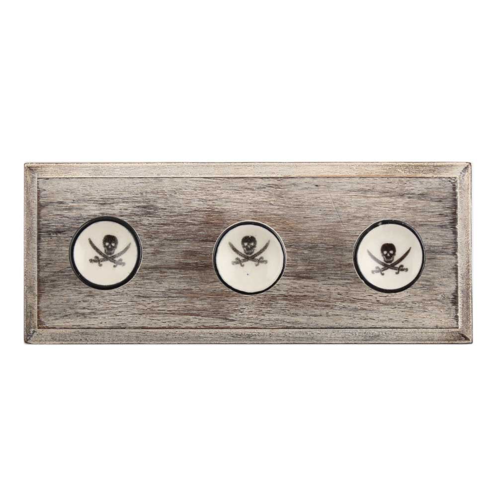 Black Man Skull Danger Symbol Flat Ceramic Wooden Hook. A Perfect Complement to the Soft Tone of the Wood are these White Traditional Hat & Coat Hook Made of Genuine Porcelain and Brass. It can be use to Hang Jewellery, Leashes, Towels, Scarves, Light Weight Sweaters, Caps Etc.