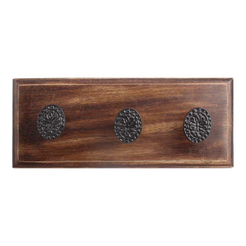 Black Oval Flower Metal Wooden Hook. A Perfect Complement to the Soft Tone of the Wood are these White Traditional Hat & Coat Hook Made of Genuine Porcelain and Brass. It can be use to Hang Jewellery, Leashes, Towels, Scarves, Light Weight Sweaters, Caps Etc.