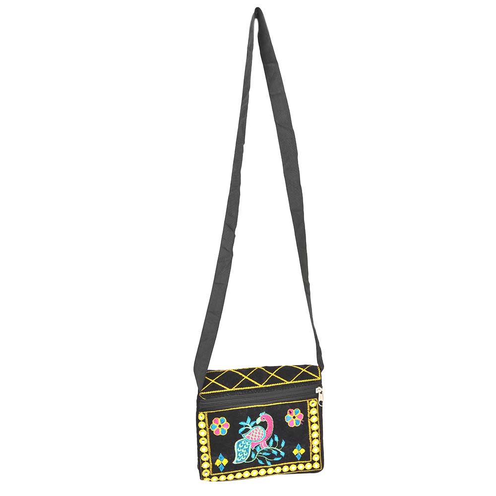 This sling handbag looks tempting because of the embroidered fabric used . The colour is such that it can go with most of the dresses. Easy to carry string makes it all the more comfortable .These are ethnic products so any imperfections should be taken as normal.